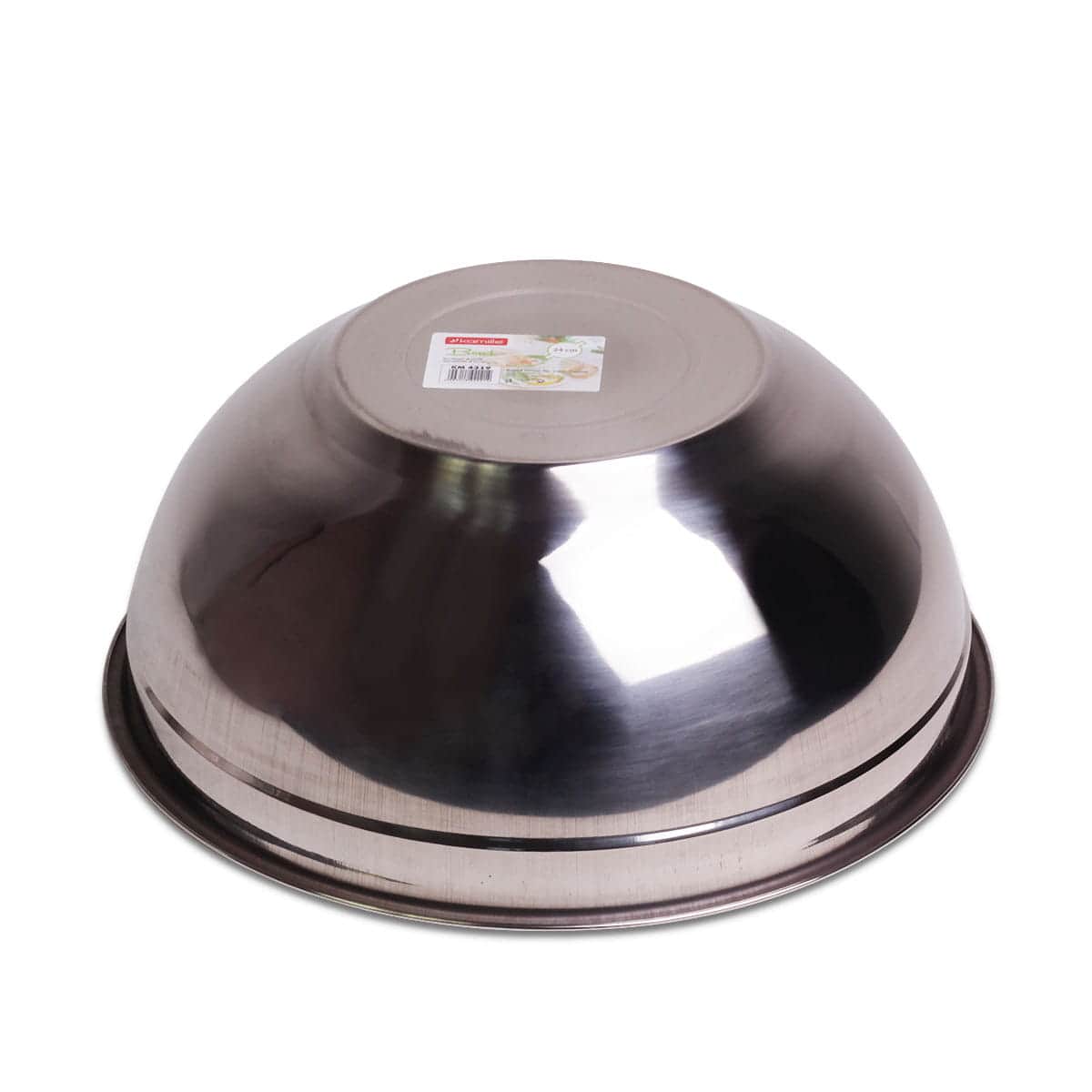 Acest Bol din otel inoxidabil este un vas versatil si durabil, esential in orice bucatarie. Dimensiunile de 24 cm diametru si 10 cm inaltime il fac perfect pentru mixat aluaturi, salate sau pentru servirea meselor.