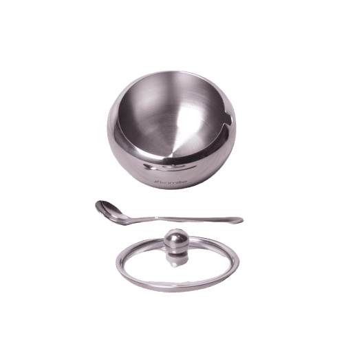 Acest set practic format din bol si lingurita este realizat din otel inoxidabil de inalta calitate, oferind o alternativa durabila si igienica la vasele ceramice clasice. Materialul nu retine mirosuri si este rezistent la socuri, fiind ideal pentru utilizarea acasa sau la birou.