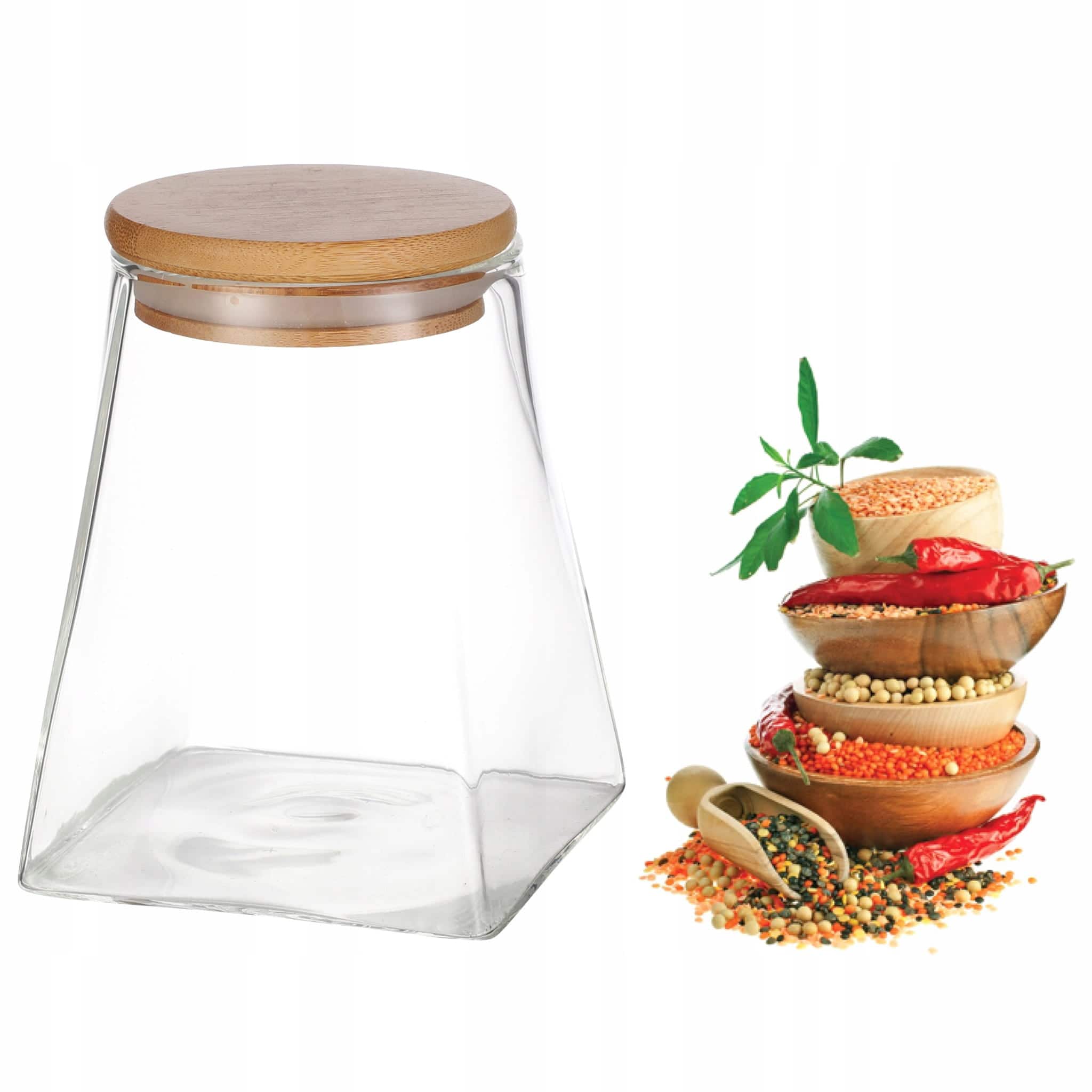 Capacul din bambus natural asigura o inchidere etansa, protejand continutul de umiditate si aer. Datorita dimensiunilor compacte (7.5×7.5×9.5cm), se integreaza perfect in orice spatiu din bucatarie.