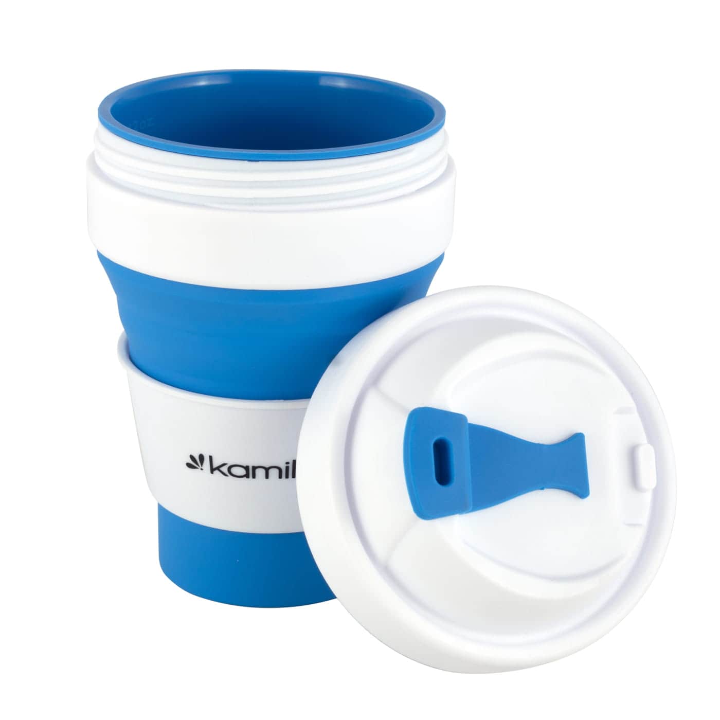 Capacitatea de 350 ml este ideala pentru cafea, ceai sau apa. Include un capac etans si un inel rigid din plastic pentru o manevrare usoara. Dimensiunile de 14.5×5.5 cm (extinsa/pliata) o fac usor de transportat in buzunar sau rucsac.