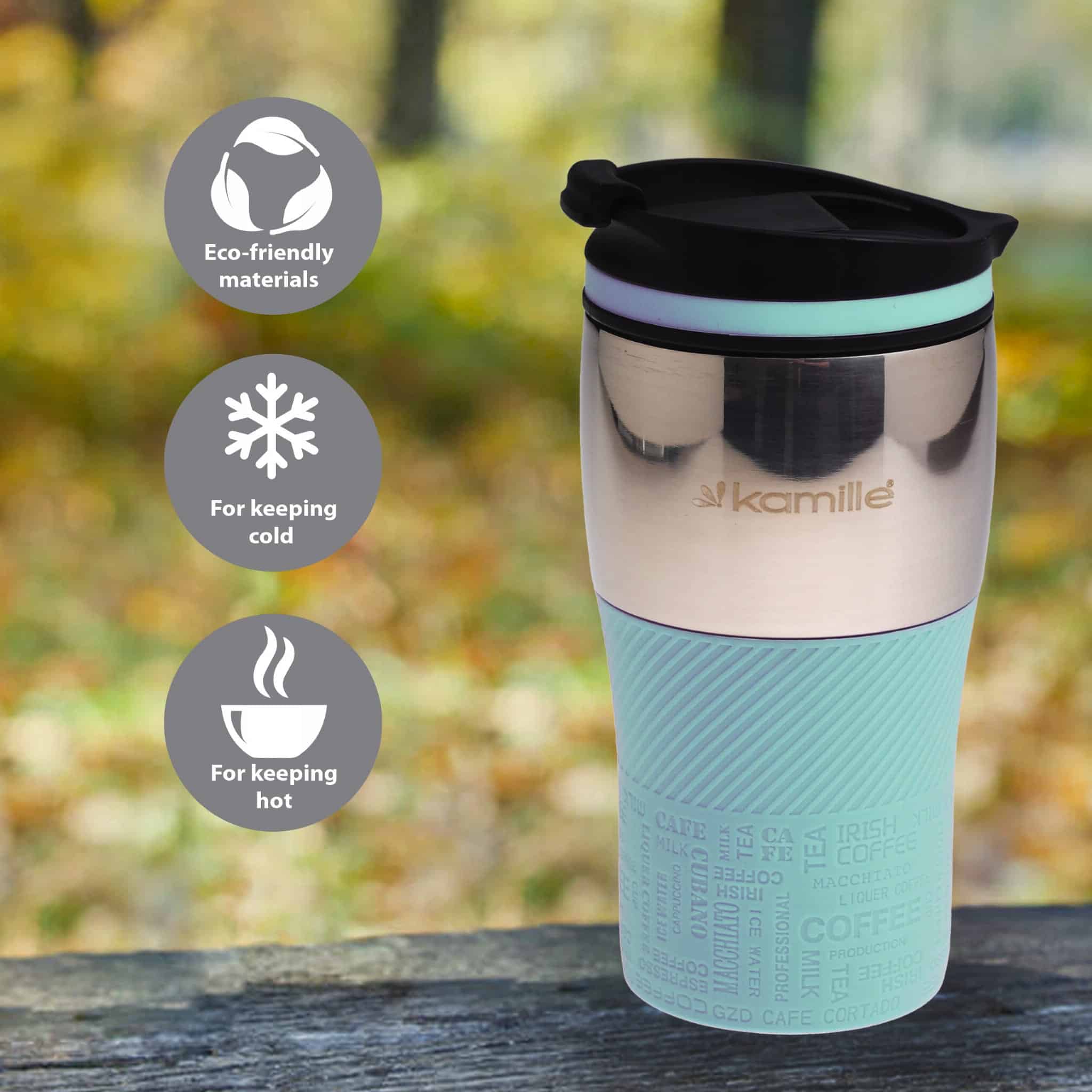 Cana termos 320ml menta Kamille (KM2155), perfecta pentru a lua bautura preferata cu dumneavoastra, mentinand-o calda sau rece timp de pana la 10 ore.