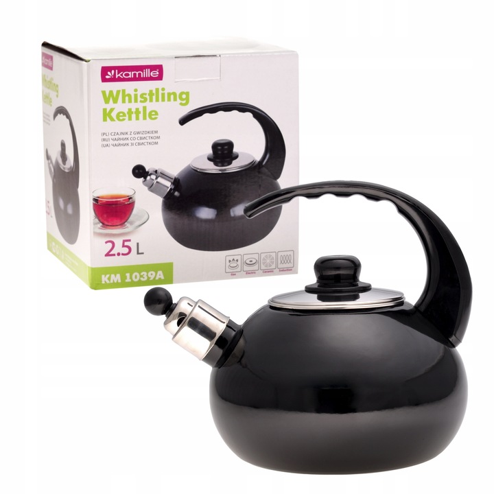 Ceainic cu Fluier, otel, 2.5L, compatibil inductie, negru