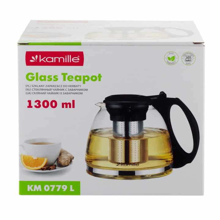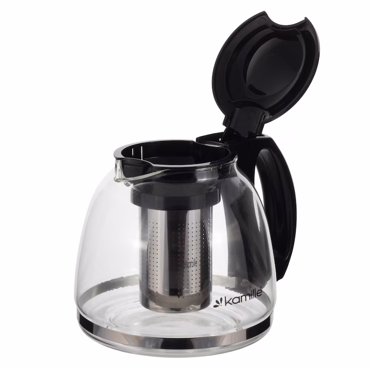 Ceainic Kamille 1300ml Sticlă Rezistentă la Căldură Inox cu Sită – Eleganță și Funcționalitate pentru Amatorii de Ceai
