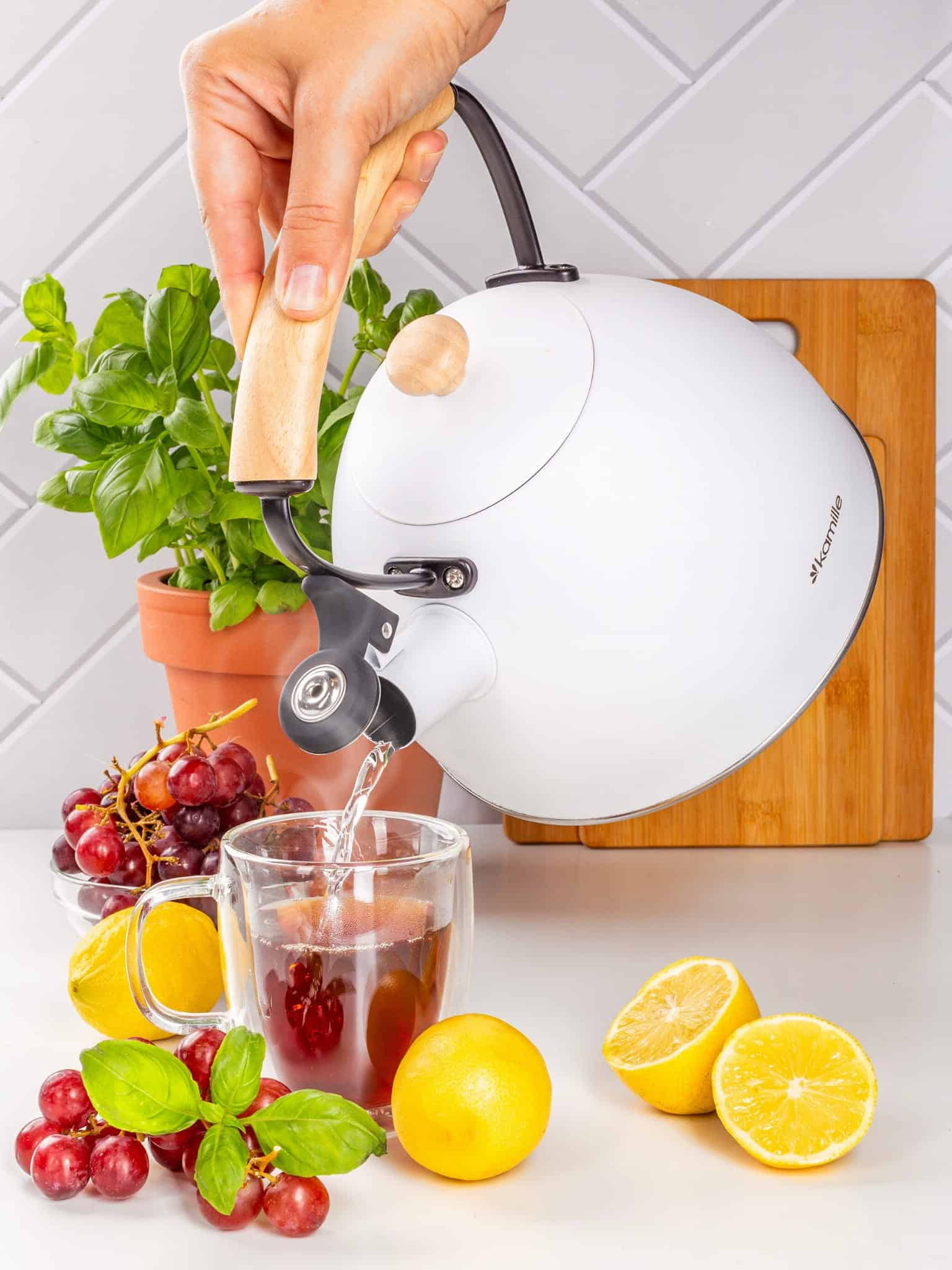 Ceainicul Kamille din inox de 2.7 litri cu fluier automat combină funcționalitatea clasică cu eficiența de care ai nevoie în bucătăria de zi cu zi. Capacitatea mare îl face potrivit pentru pregătirea mai multor porții de băuturi calde într-o singură utilizare, fie că este vorba de ceai, cafea instant sau apă fierbinte pentru alte rețete.