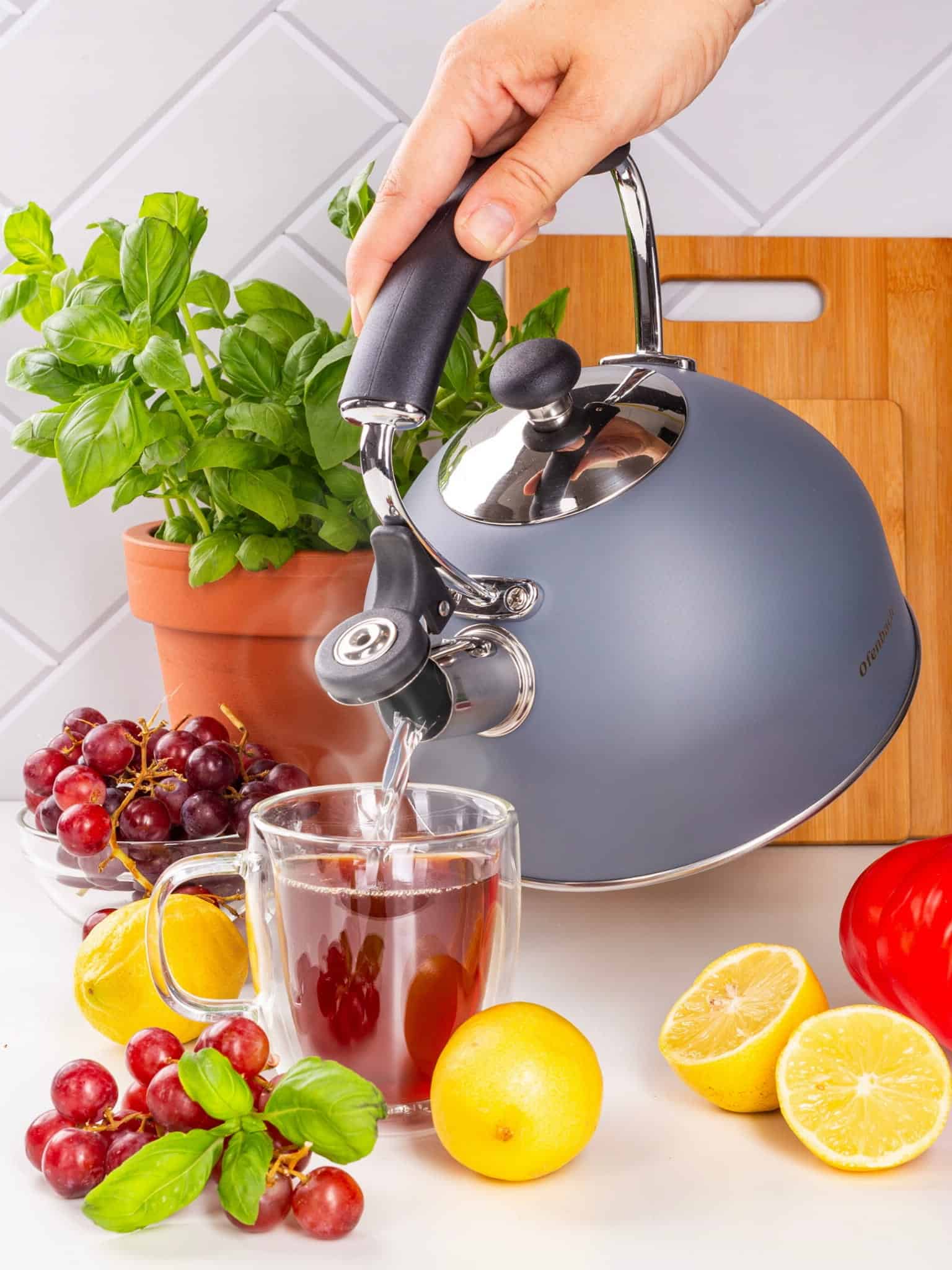 Ceainicul modern are o capacitate de 2.2 litri. Designul este contemporan și atrăgător. Corpul este robust și ușor de curățat. Mânerul este ergonomic și confortabil. Materialul rezistă la utilizare frecventă. Capacitatea este potrivită pentru familii mici. Clopoțelul automat semnalizează când apa fierbe. Sunetul este clar și destul de puternic. Astfel știți imediat când este gata. Gura de turnare este bine proiectată. Turnarea se face fără stropi. Capacul se închide sigur. Izolarea capacului păstrează temperatura. Fundul este stabil și uniform. Se încălzește rapid pe majoritatea surselor de căldură. Designul optimizează distribuția căldurii. Finisajele sunt netede și plăcute la atingere. Interiorul permite o curățare facilă. Depunerile se pot îndepărta ușor. Ceainicul poate fi folosit pentru ceai, apă pentru cafea sau alte băuturi calde. Este ideal pentru uz casnic și mici întâlniri. Forma compactă economisește spațiu în bucătărie. Greutatea este echilibrată pentru manevrare ușoară. Mânerul rămâne rece pe durata încălzirii. Siguranța a fost luată în considerare la proiectare. Produsul este ușor de depozitat. Se potrivește cu majoritatea stilurilor de bucătărie. Culorile disponibile sunt moderne și versatile. Raportul capacitate-dimensiuni este eficient. Ceainicul oferă o combinație între funcționalitate și estetică. Utilizarea este intuitivă și simplă. Nu necesită întreținere complexă. Performanța rămâne constantă în timp. Este o alegere bună pentru cei care caută praticitate și fiabilitate. Achiziția aduce un obiect util, durabil și estetic. Recomandat pentru uz zilnic în gospodării sau birouri mici. Produsul oferă confort în pregătirea băuturilor fierbinți și economisește timp.