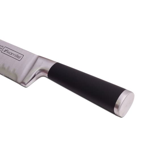 Manerul ergonomic asigura o priza confortabila, reducand oboseala mainii in timpul utilizarii prelungite. Acest Cutit santoku 16cm este fabricat din otel de inalta calitate, mentinandu-si taisul pentru mult timp.