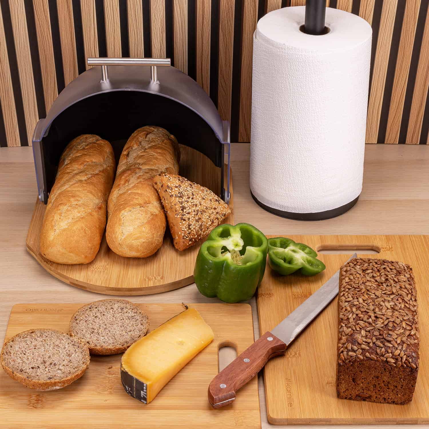 Aceasta cutie eleganta combina functionalitatea cu un aspect natural si modern. Corpul din bambus este durabil si prietenos cu mediul, asigurand un mediu optim pentru pastrarea painii.