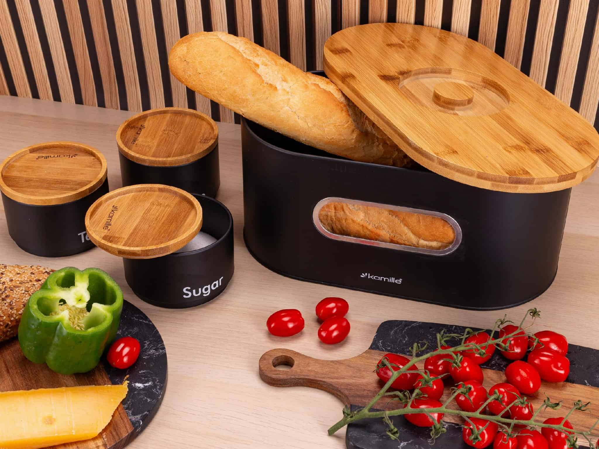 Bambusul este un material durabil si estetic, care se potriveste in multe stiluri de bucatarie. Panerul pastreaza painea proaspata mai mult timp.