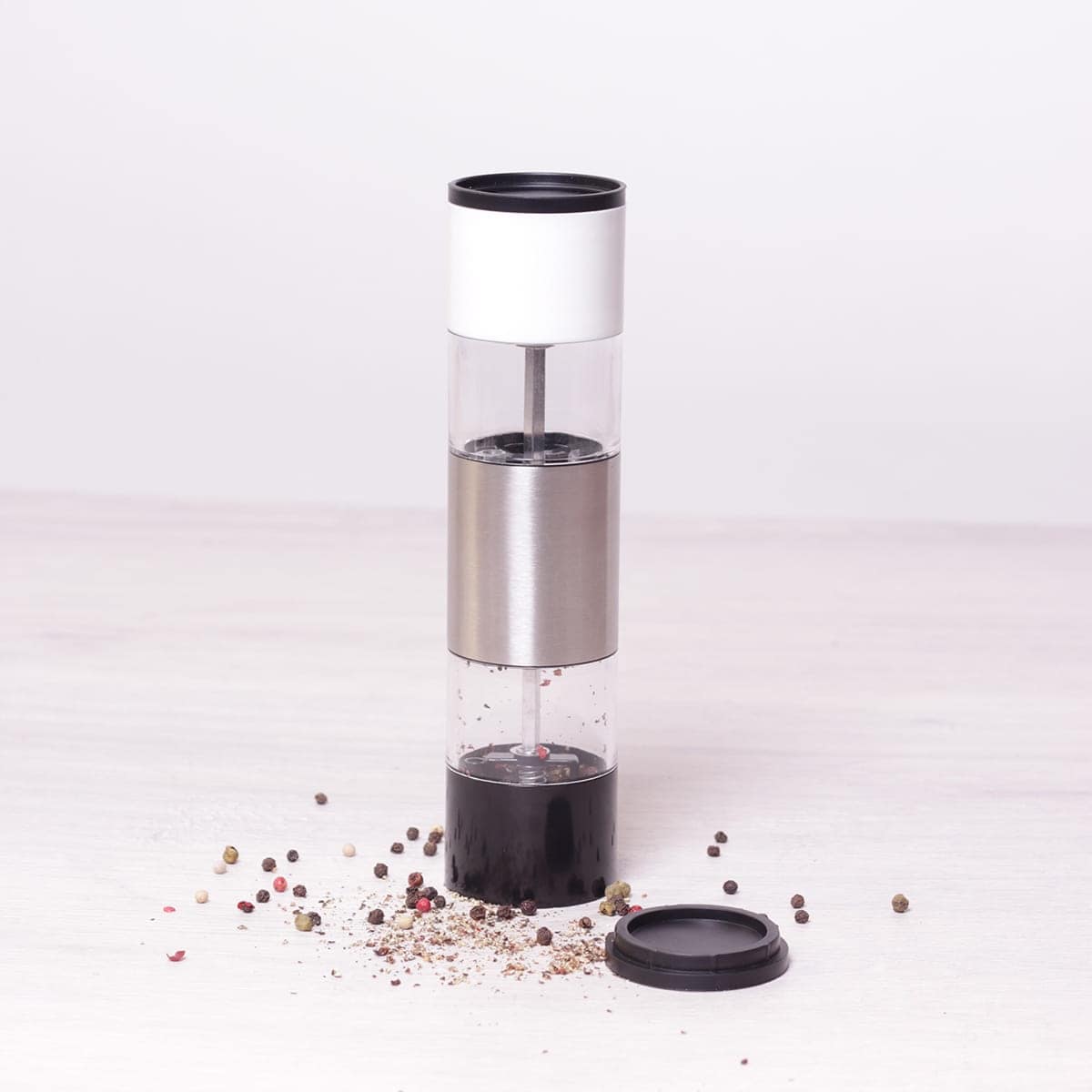Adaugati un plus de stil mesei dumneavoastra cu acest dozator de condimente modern. Corpul inalt de 22 cm este realizat dintr-o combinatie de otel rezistent si material transparent, permitand monitorizarea usoara a nivelului de umplere.