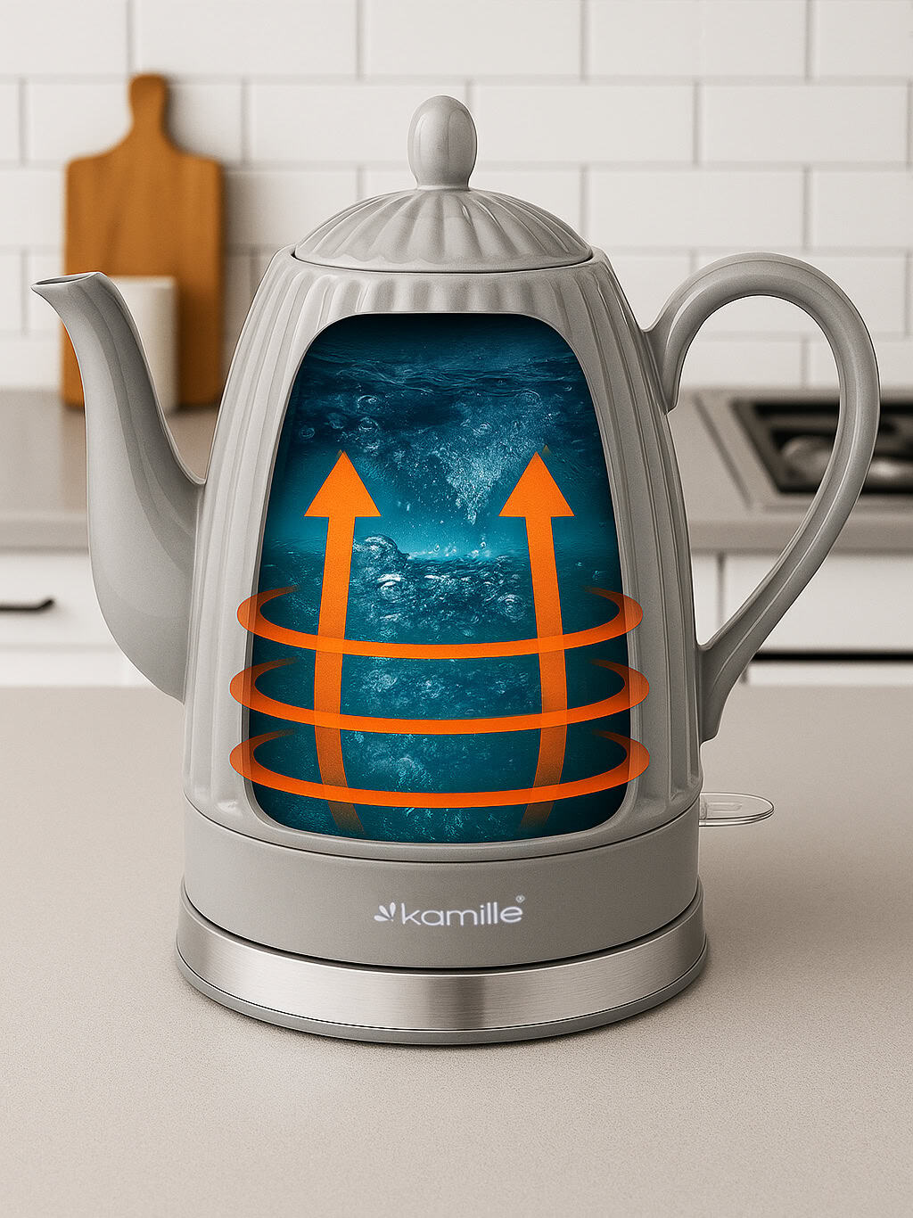 Acest ceainic nu este doar un aparat de bucătărie, ci și o piesă de design: eleganța ceramicii, finisajul premium și performanța rapidă îl fac indispensabil. Alege ceainicul Kamille ceramic 1200 W 1 L fără fir pentru confort, siguranță și stil în fiecare zi. Fie că îl folosești pentru ceaiuri, infuzii sau apă caldă, acest ceainic oferă rezultate excelente, rapid și eficient.