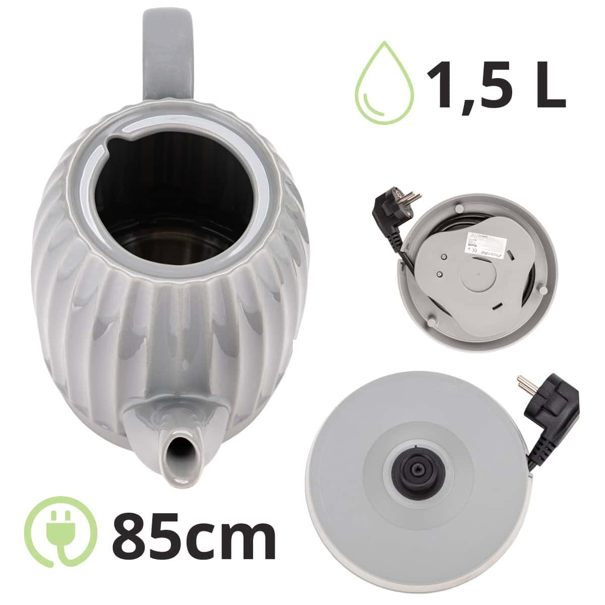 Transformă fiecare moment de ceai sau cafea într-o experiență plăcută cu ceainicul Kamille ceramic 1200 W 1 L fără fir. Acest ceainic Kamille ceramic 1200 W 1 L fără fir combină designul elegant al ceramicii cu performanța puternică de 1200 W și o capacitate de 1 litru, perfectă pentru prepararea rapidă a apei fierbinți pentru întreaga familie sau pentru oaspeți.