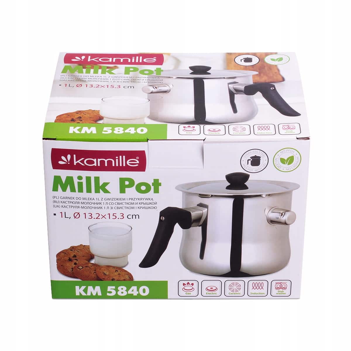 Ibricul are o capacitate de 1 Litru si include un capac. Este ideal pentru incalzirea laptelui sau a altor lichide sensibile. Forma si constructia (presupusa din inox) asigura o incalzire rapida si uniforma. Compatibil cu plitele clasice si, cel mai probabil, cu inductia (daca are fund magnetic).
