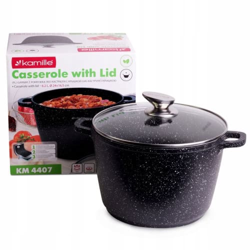 Cu o capacitate de 6.2 litri, aceasta oala este perfecta pentru supe, tocanite sau paste. Invelisul de marmura neagra asigura o rezistenta termica si mecanica ridicata, fiind foarte durabil.