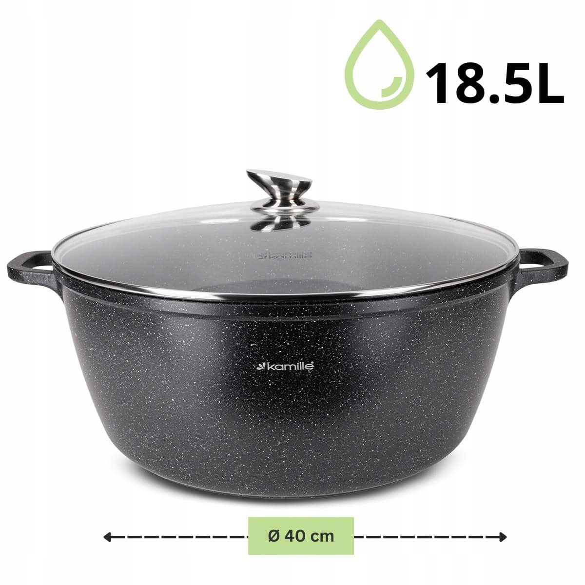 Aceasta Oala este ideala pentru prepararea meselor in cantitati mari (catering, evenimente, familii numeroase). Capacitatea de 18.5 Litri o face perfecta pentru supe, ciorbe, sau fierberea in volum mare.