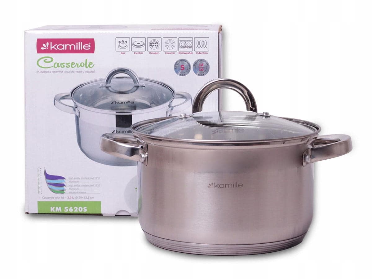 Oala din Inox 3.9 L cu Capac – 20×12.5 cm, Compatibila Inductie