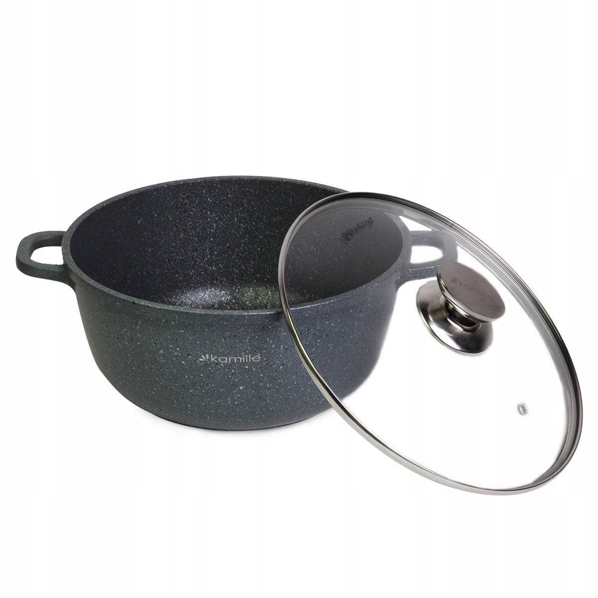 Oala Aluminiu Turnat cu Invelis Granit 4.5 L – 24 cm, Capac Sticla
