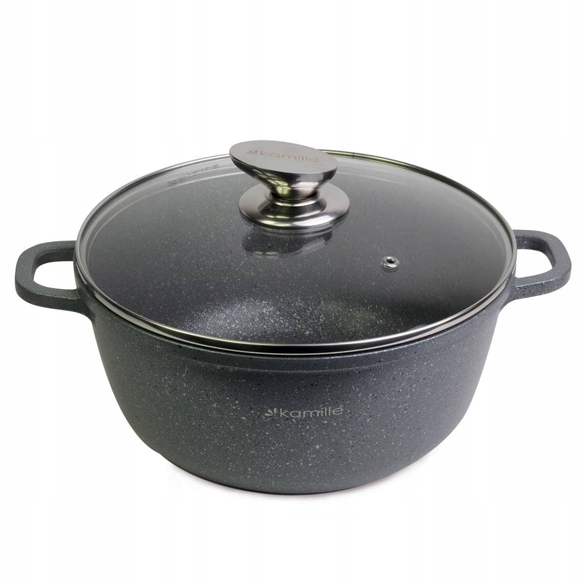 Oala este fabricata din aluminiu turnat (corp robust) si are un invelis de granit (piatra) antiaderent de inalta calitate, care asigura durabilitate si gatit sanatos. Capacul din sticla permite monitorizarea usoara. Oala are culoarea Negru la exterior si este compatibila cu toate sursele de caldura, inclusiv plitele cu inductie.
