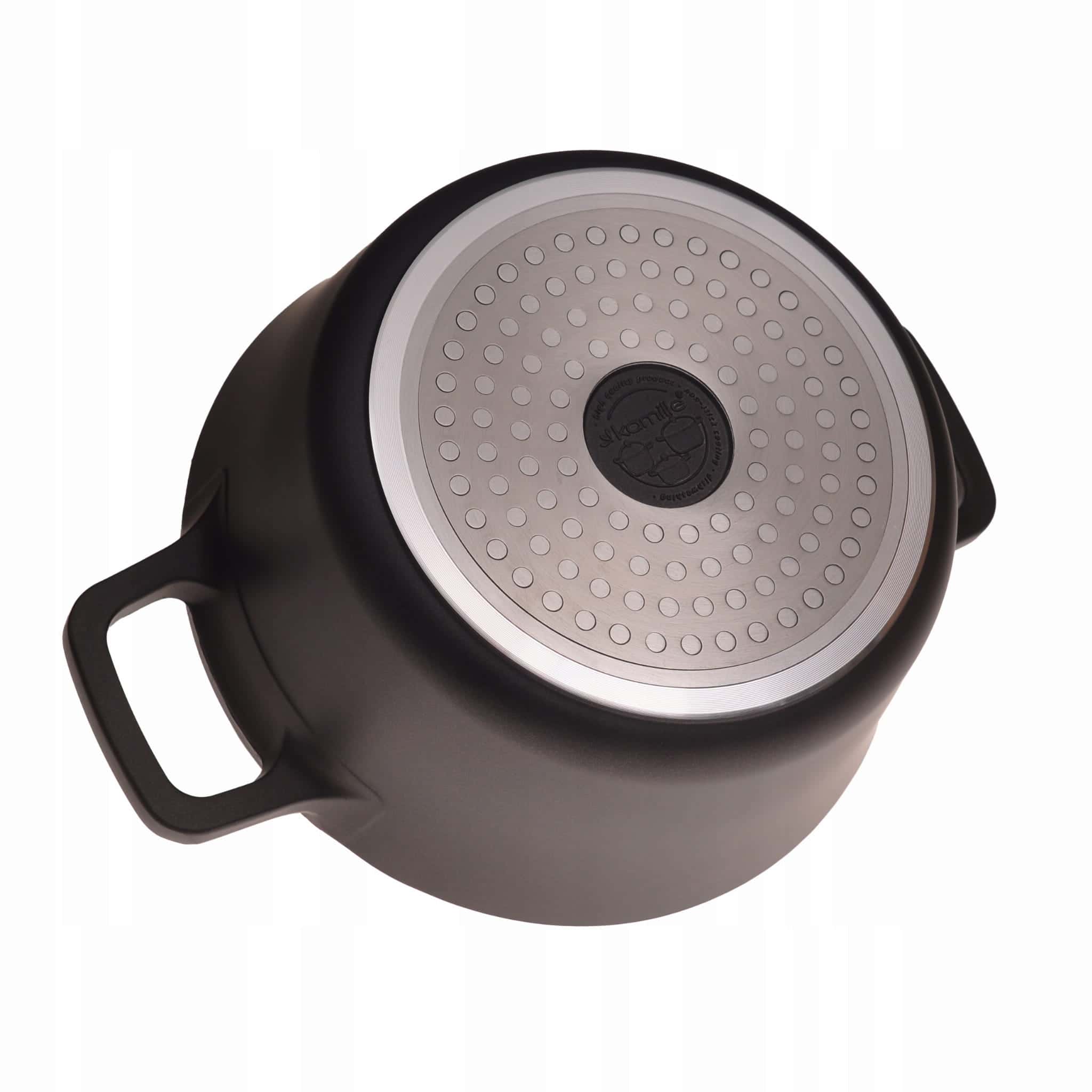 Stratul antiaderent asigura gatitul fara lipire si reduce necesarul de ulei. Miezul din aluminiu ofera o distributie uniforma a caldurii, iar capacul de sticla permite supravegherea preparatului.