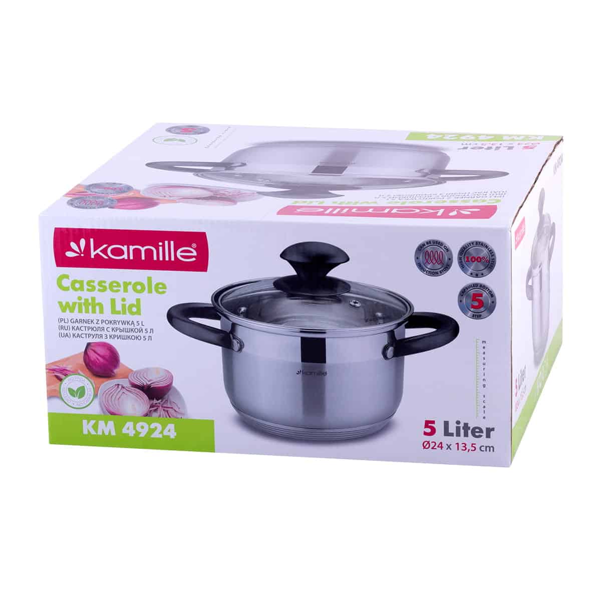 Oala din Otel Inoxidabil 5.0 Litri cu Baza Inductiva – Oala inox 5.0L 24cm inductie