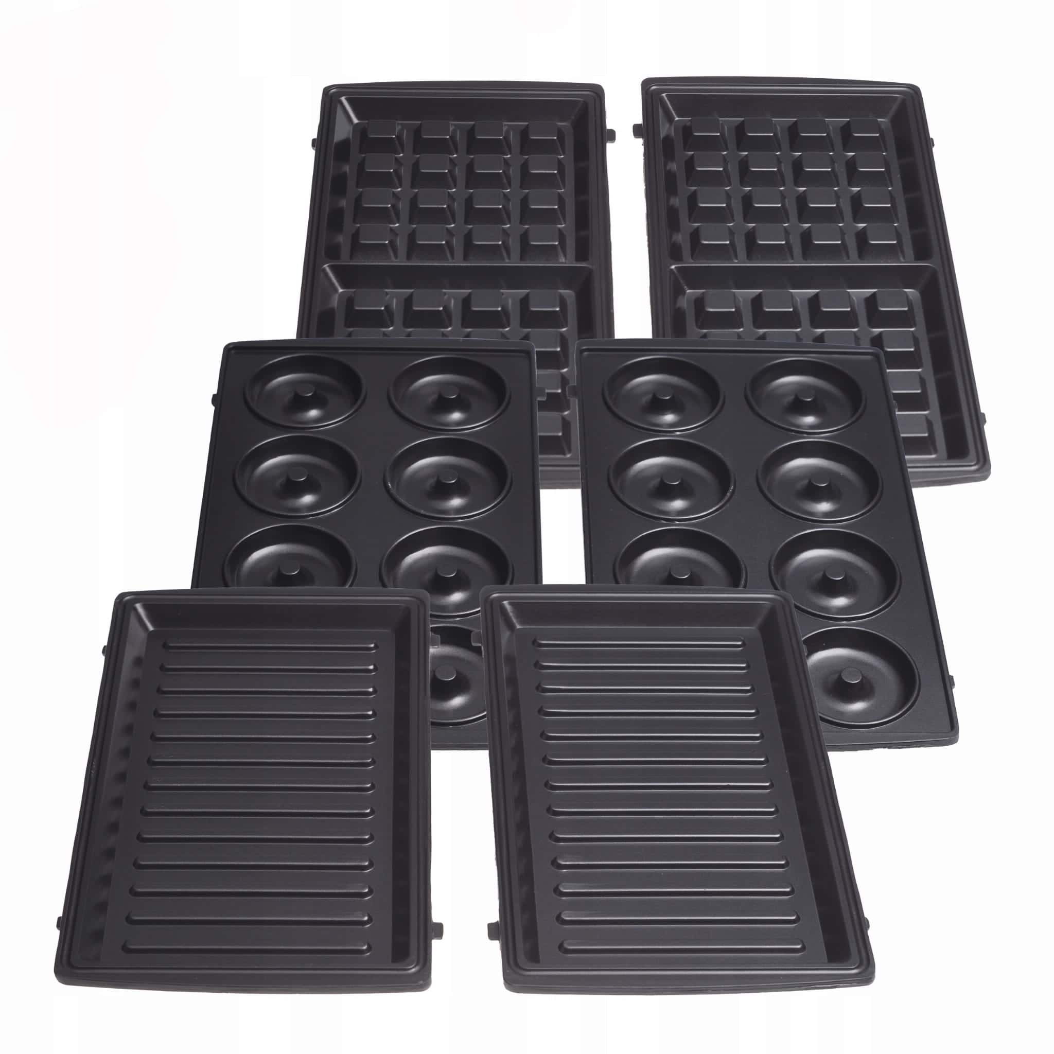 Acest dispozitiv universal 5-în-1 Kamille este soluția perfectă pentru micul dejun și gustări rapide. Cu o putere reală de 800 W, aparatul combină funcționalitatea a cinci aparate diferite într-unul singur, datorită setului de plăci antiaderente interschimbabile.