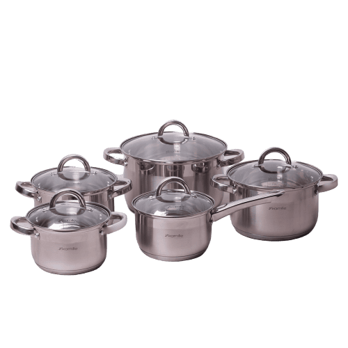 Baza incapsulata asigura o distributie optima a caldurii. Este un Set 10 piese oale inox inductie un investitie durabila si de incredere pentru orice bucatarie.