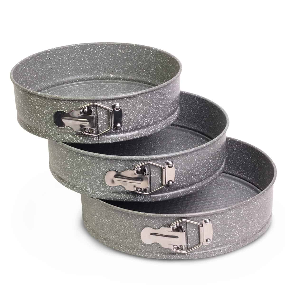 Invelisul antiaderent superior previne lipirea aluatului si face ca eliberarea prajiturilor si curatarea sa fie extrem de usoare. Setul contine 3 marimi diferite, ideale pentru a crea torturi etajate sau prajituri de diverse dimensiuni.