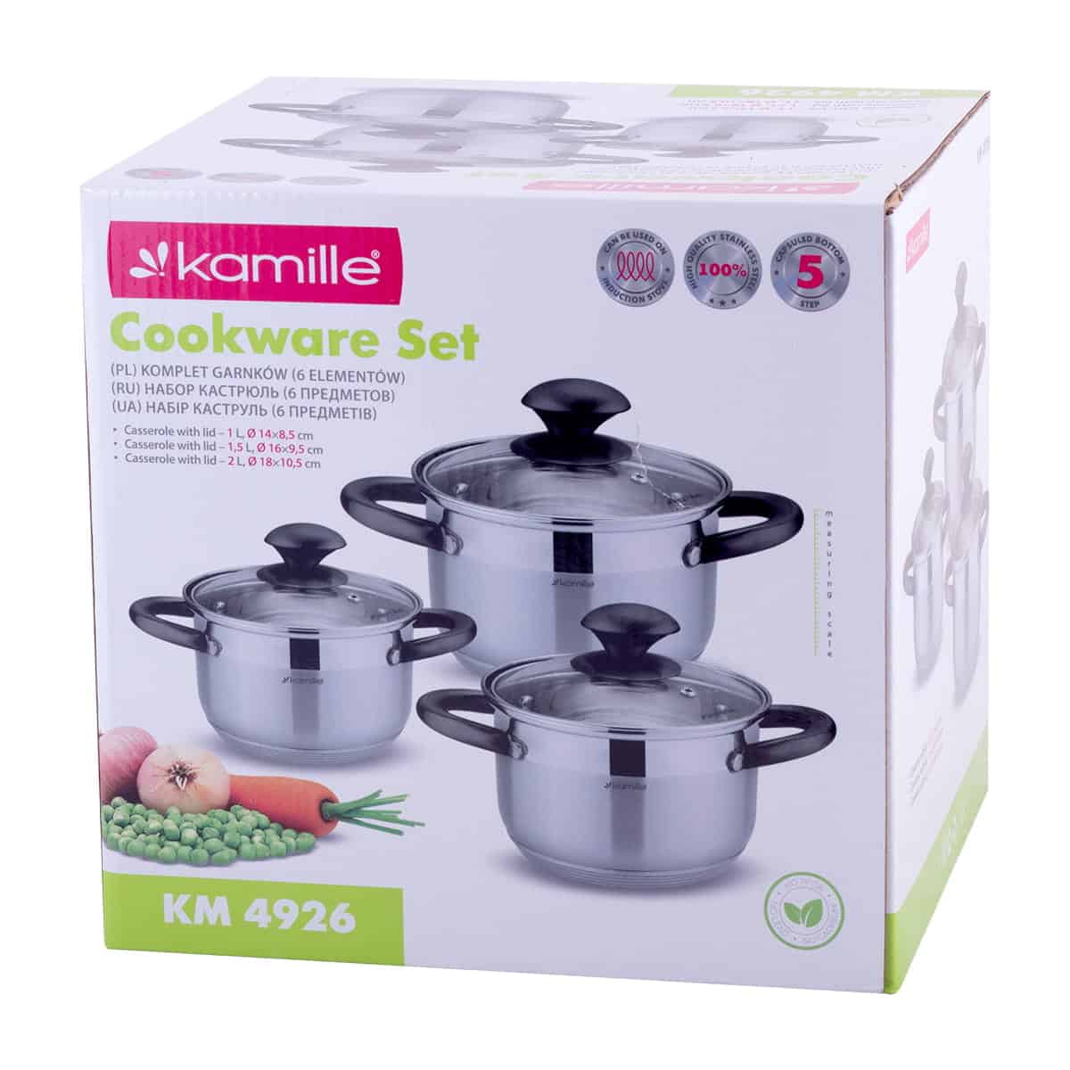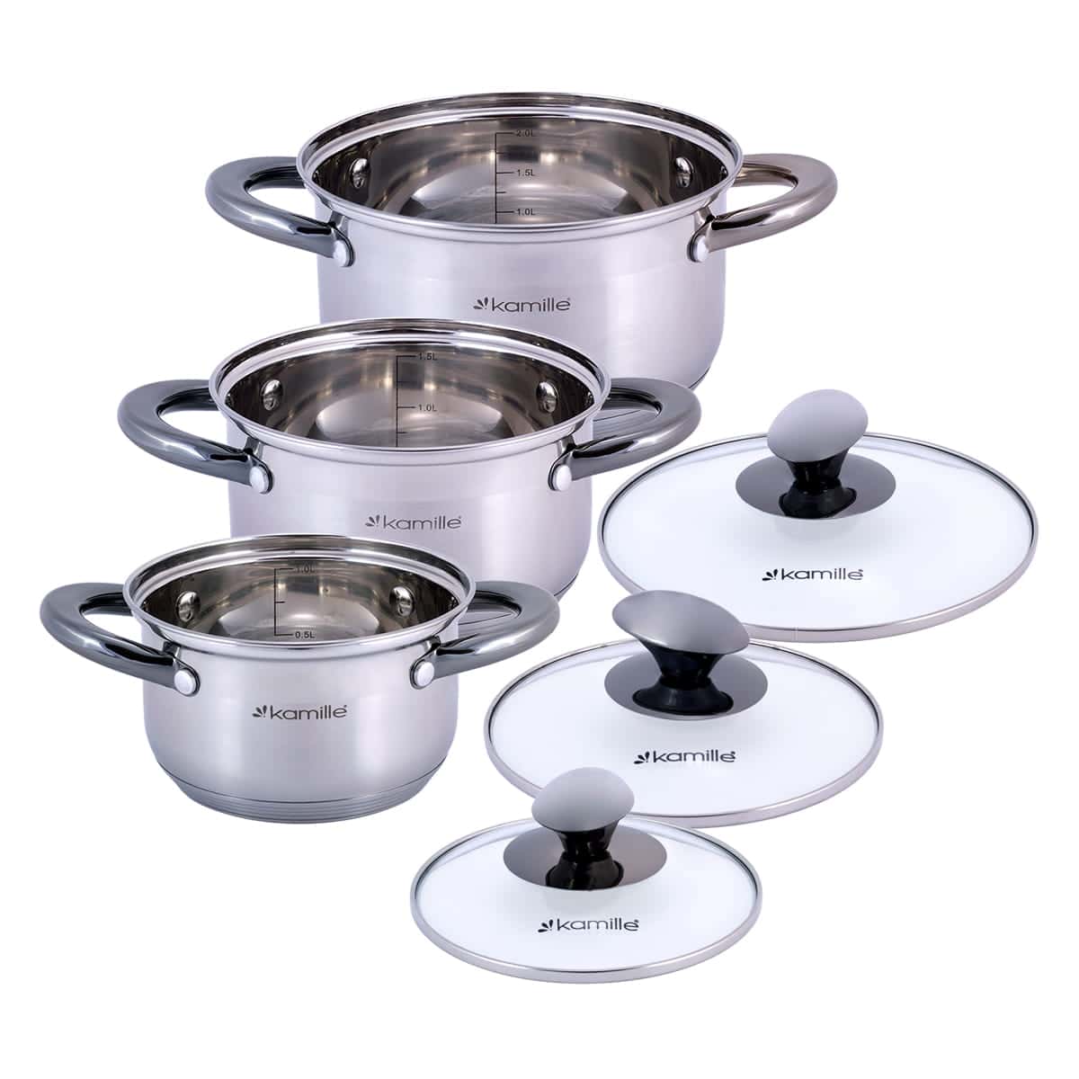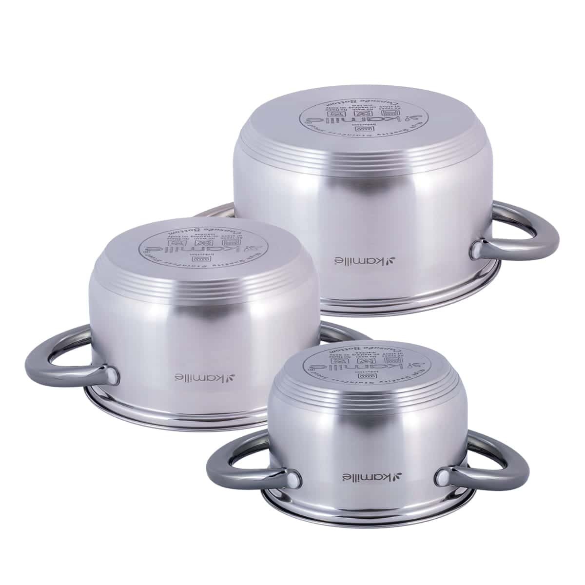 Set 3 Oale cu Capac (6 Piese) Otel Inoxidabil – Inductie, 1L, 1.5L, 2L