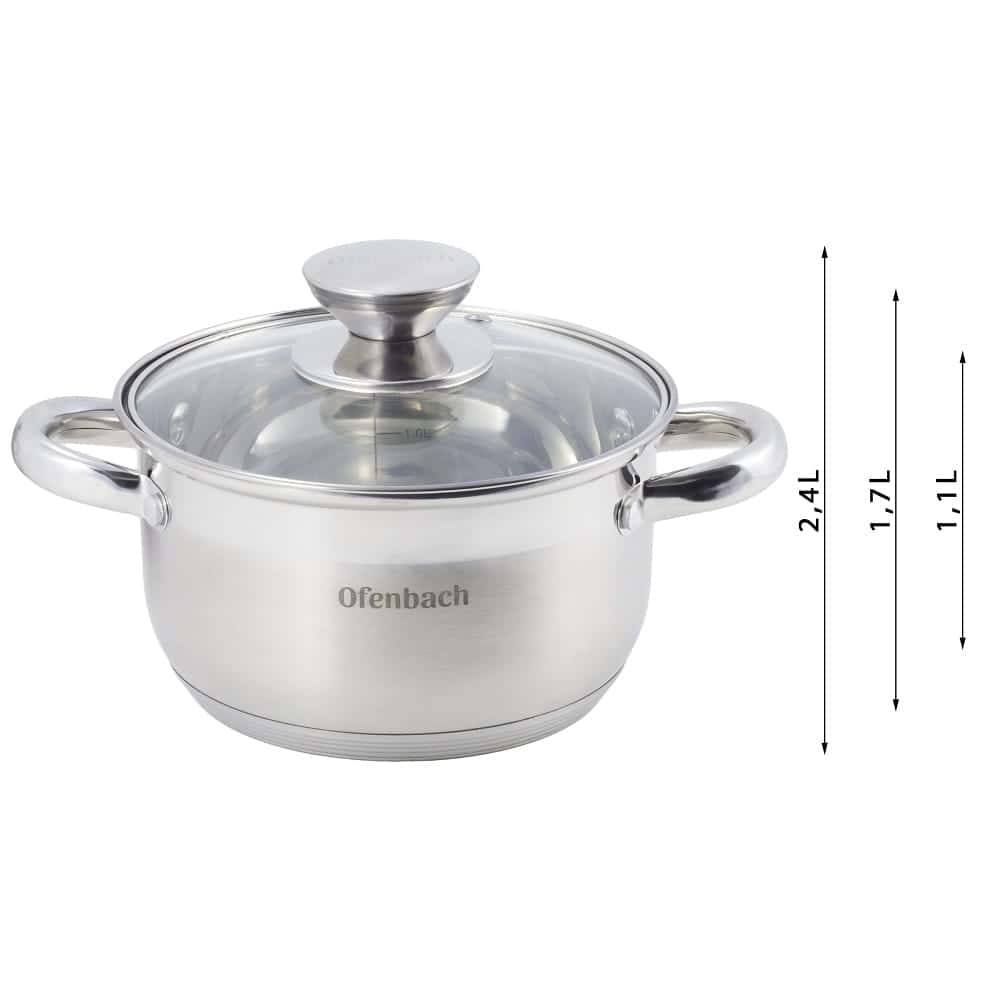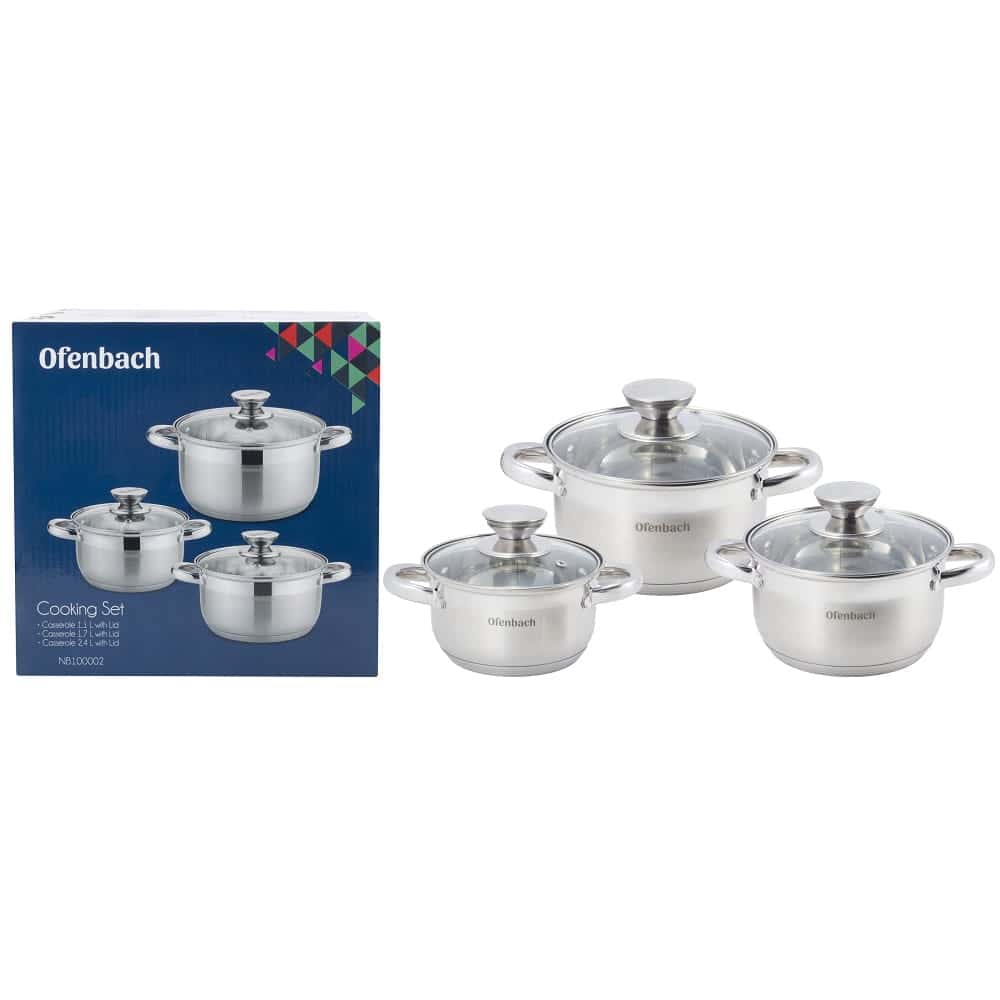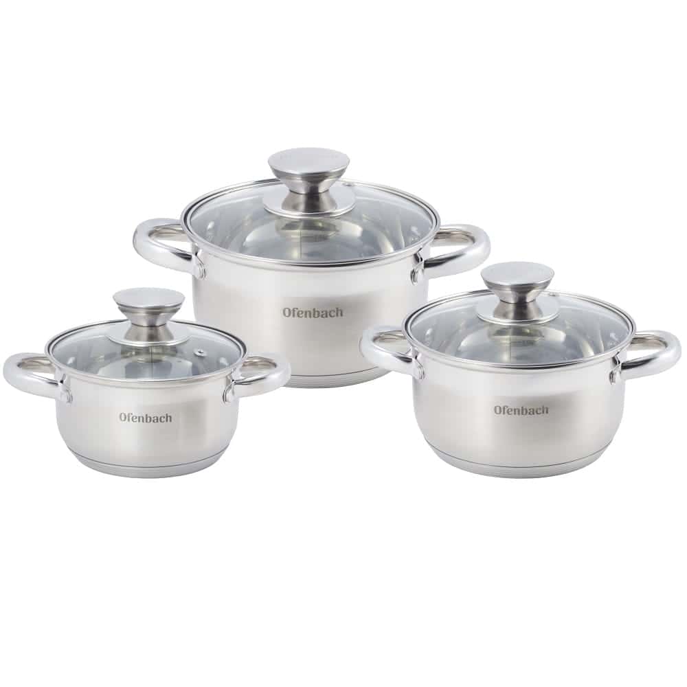 Set de 3 oale din inox de inalta calitate, cu dimensiuni variate. Se remarca prin baza incapsulata cu 5 straturi, care asigura o distributie excelenta si o retinere de lunga durata a caldurii. Un Set 3 oale inox 5 straturi inductie durabil, compatibil cu inductia si ideal pentru gatitul sanatos.