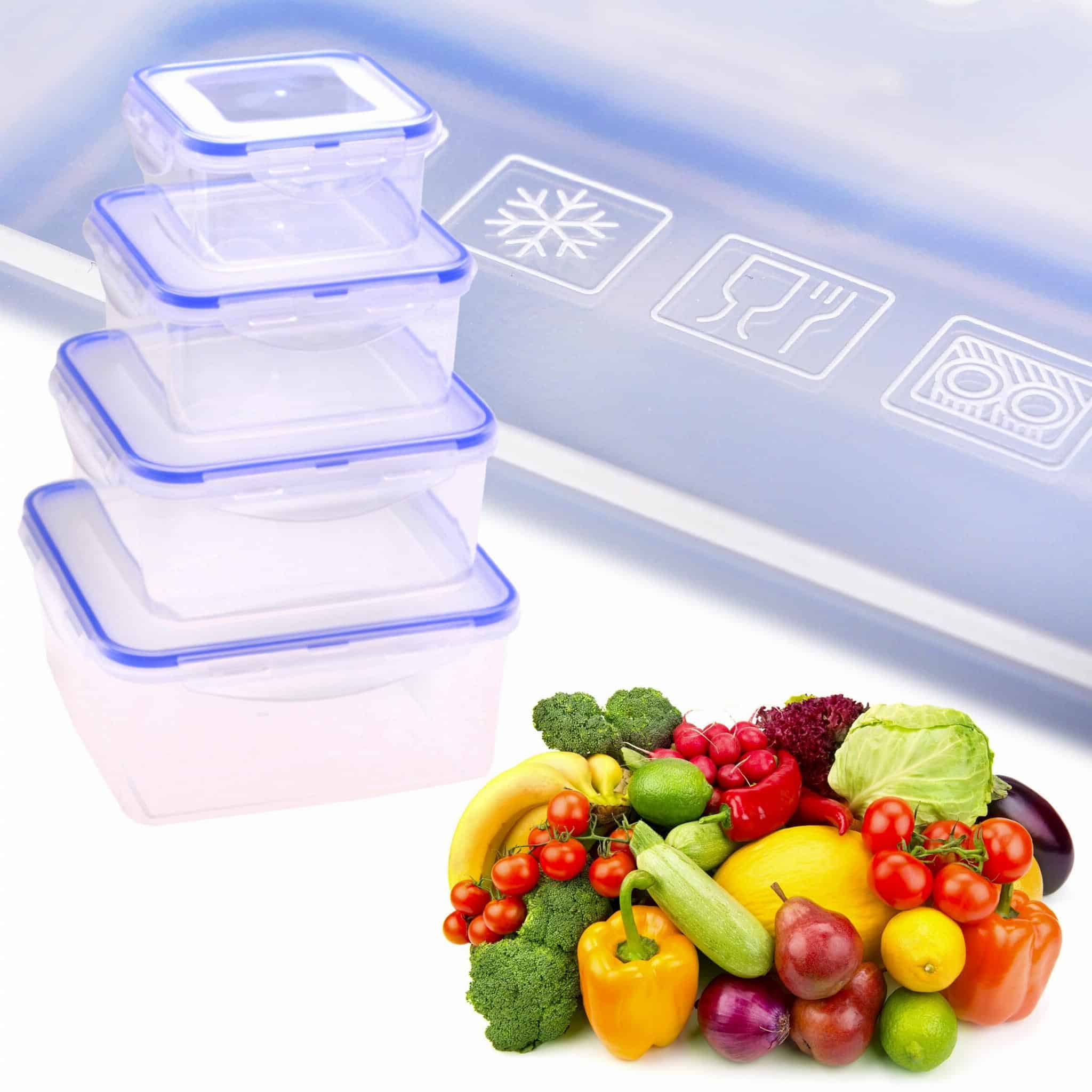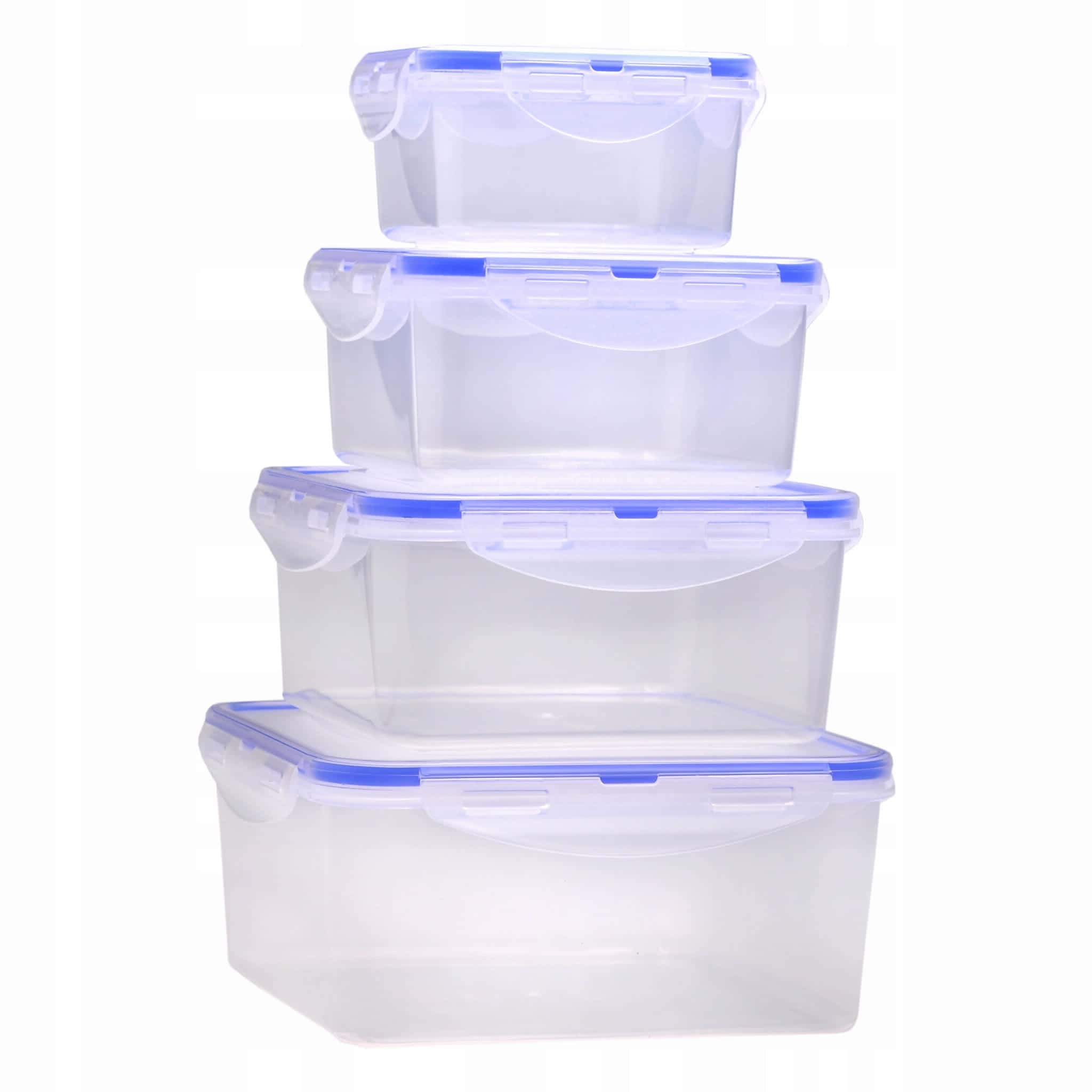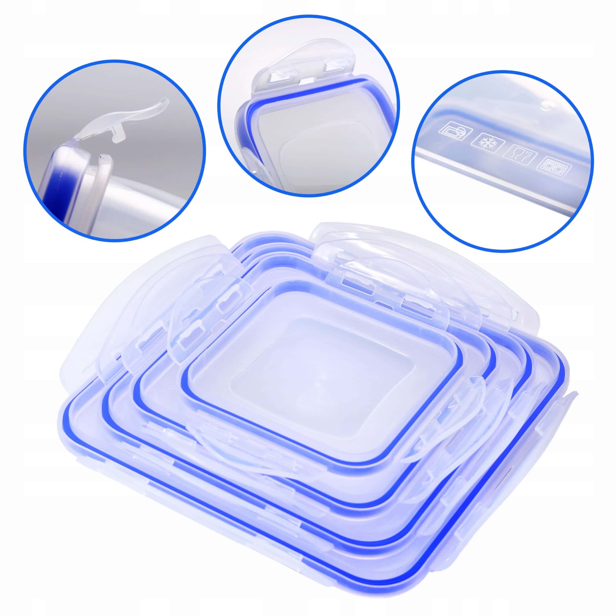 Cutiile sunt fabricate din plastic transparent de inalta calitate, permitand identificarea rapida a continutului fara a deschide capacul. Capacele de culoare albastra se inchid etans, protejand alimentele impotriva umiditatii si a mirosurilor din frigider. Sunt rezistente, pot fi stivuite pentru a economisi spatiu si sunt extrem de usor de curatat.