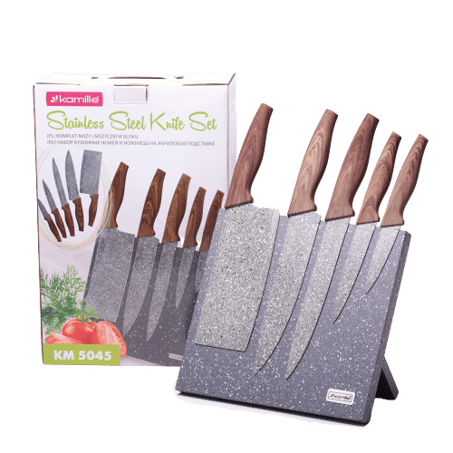 Suportul mentine cutitele organizate si asigura accesul rapid si sigur. Este un Set 5 cutite granit cu suport un element practic si cu un design modern pentru orice bucatarie.