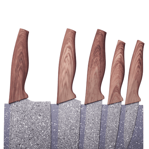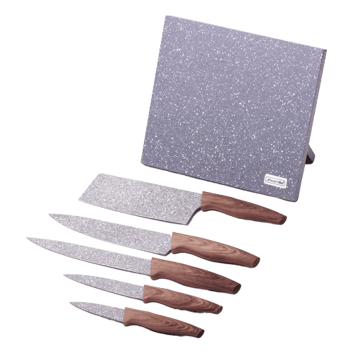Set 5 Cutite Inox cu Acoperire Granit si Suport – Set 5 cutite granit cu suport