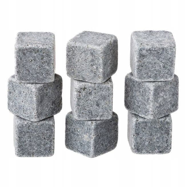 Acest Set 9 cuburi de gheata (sau pietre de racire) in stil piatra este conceput special pentru cunoscatorii de whisky si alte bauturi fine. Fabricate dintr-un material natural (precum bazalt sau sapunita), ele racesc bautura fara a se topi, pastrand astfel gustul original, fara diluare.