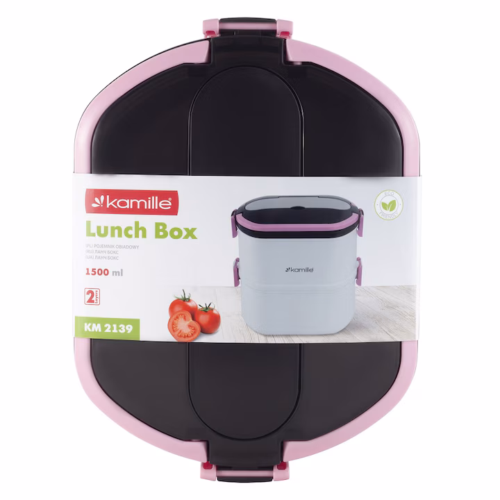 Set cutii alimentare Kamille 1,5 L alb‑roz (5 piese)