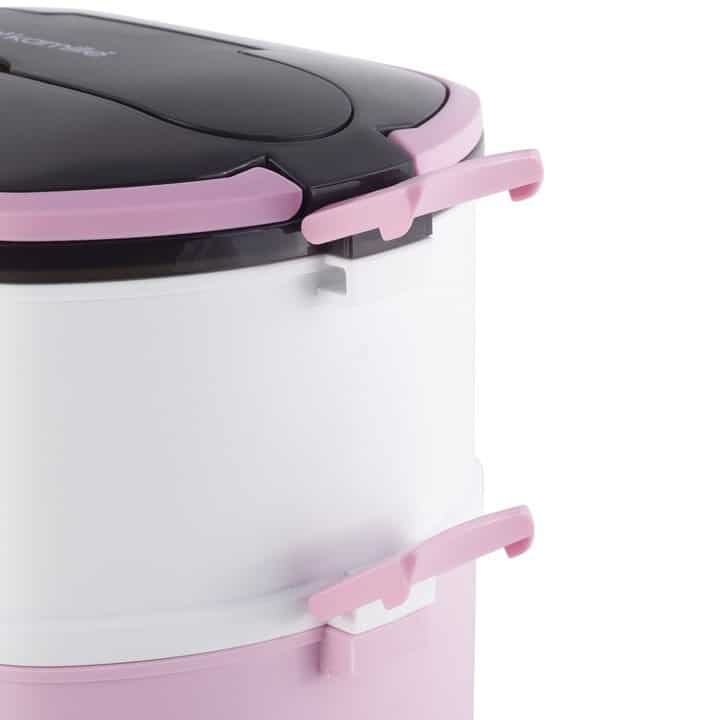 Setul are un aspect plăcut, în nuanțe de alb și roz, care adaugă un plus de stil geantelor de prânz sau frigiderului. Dimensiunea celor 5 recipiente le face ușor de stivuit și depozitat, economisind spațiu în bucătărie.