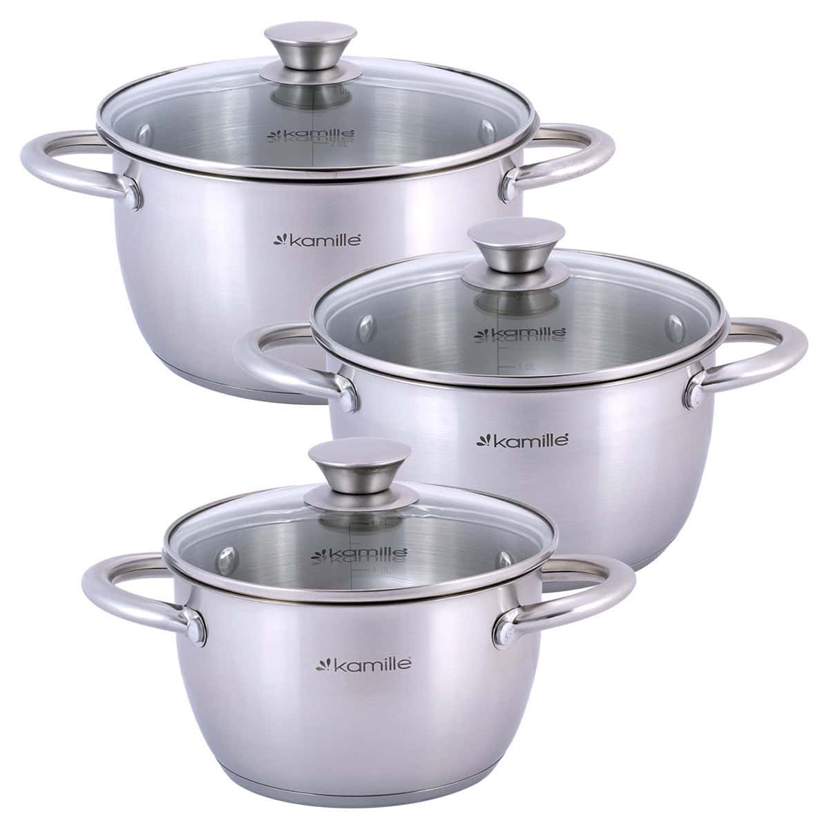 Setul Kamille 4905 dispune de fund capsulat pentru distributia optima a caldurii. Capacele din sticla termorezistenta permit monitorizarea preparatelor fara a pierde temperatura.