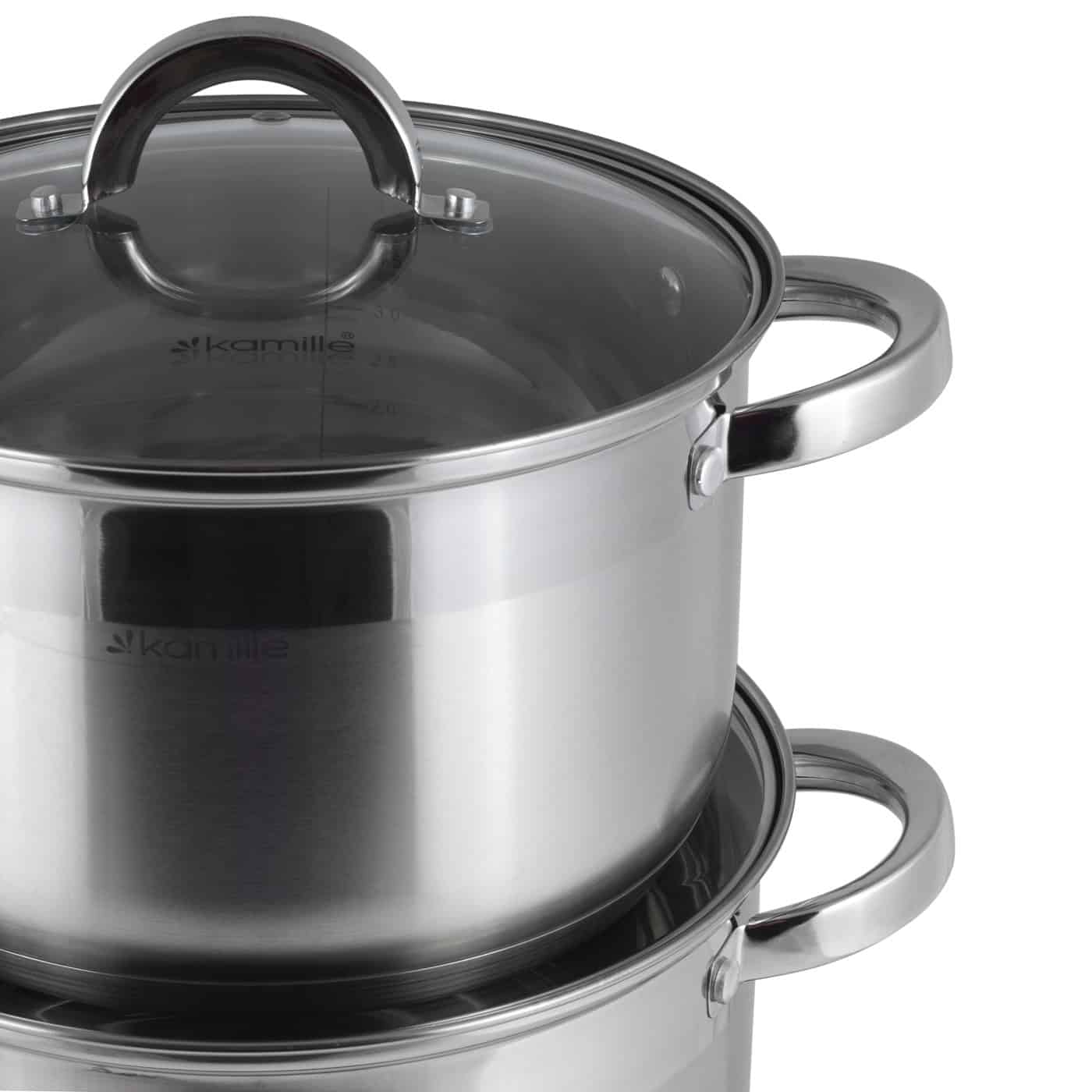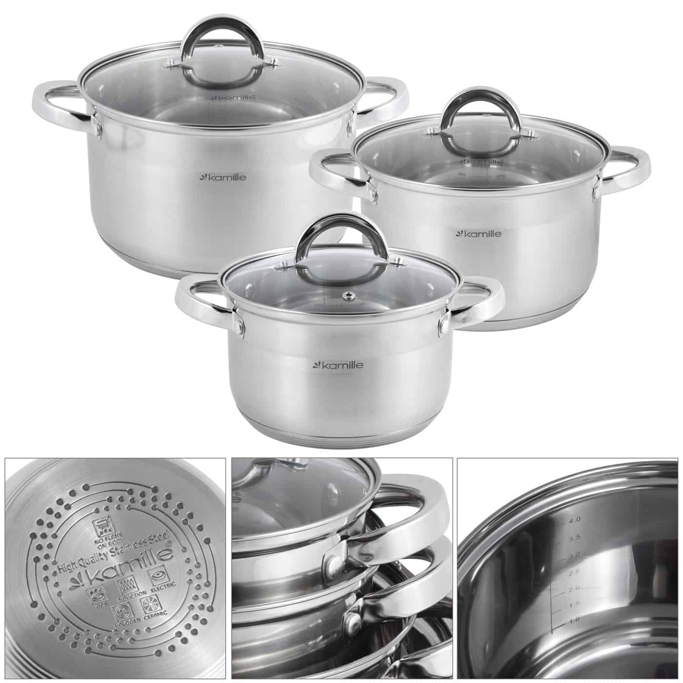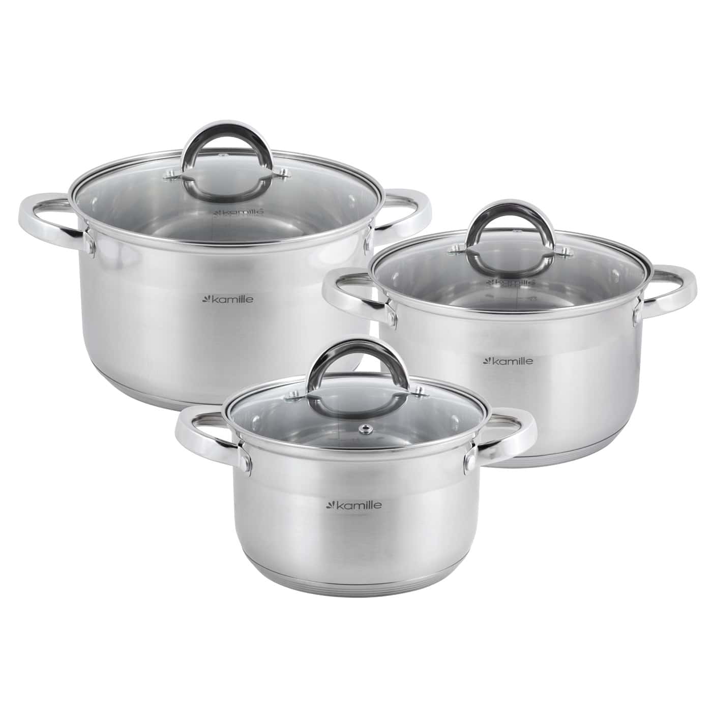 Acest set profesional include trei oale de capacitati mari, ideale pentru familii numeroase sau evenimente. Fabricate din inox premium, oalele sunt dotate cu capace de sticla si manere ergonomice ce faciliteaza manevrarea.