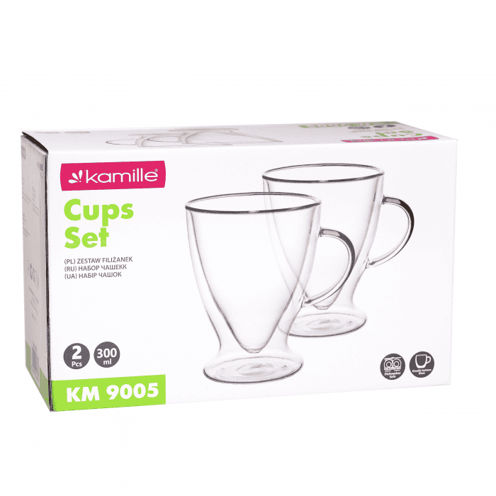 Aceste pahare Kamille 9005 sunt realizate manual din sticla de inalta calitate. Designul ergonomic le face usor de tinut in mana fara maner.
