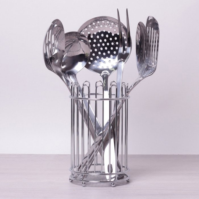 Suportul inclus mentine ordinea si ofera acces rapid la fiecare piesa. Acest Set ustensile bucatarie inox este o alegere premium pentru uzul zilnic.