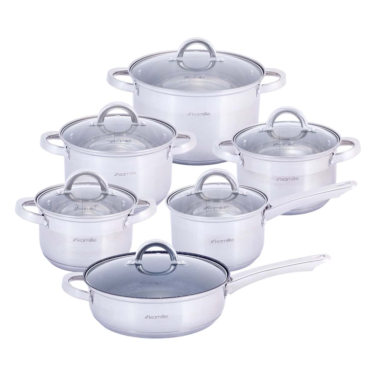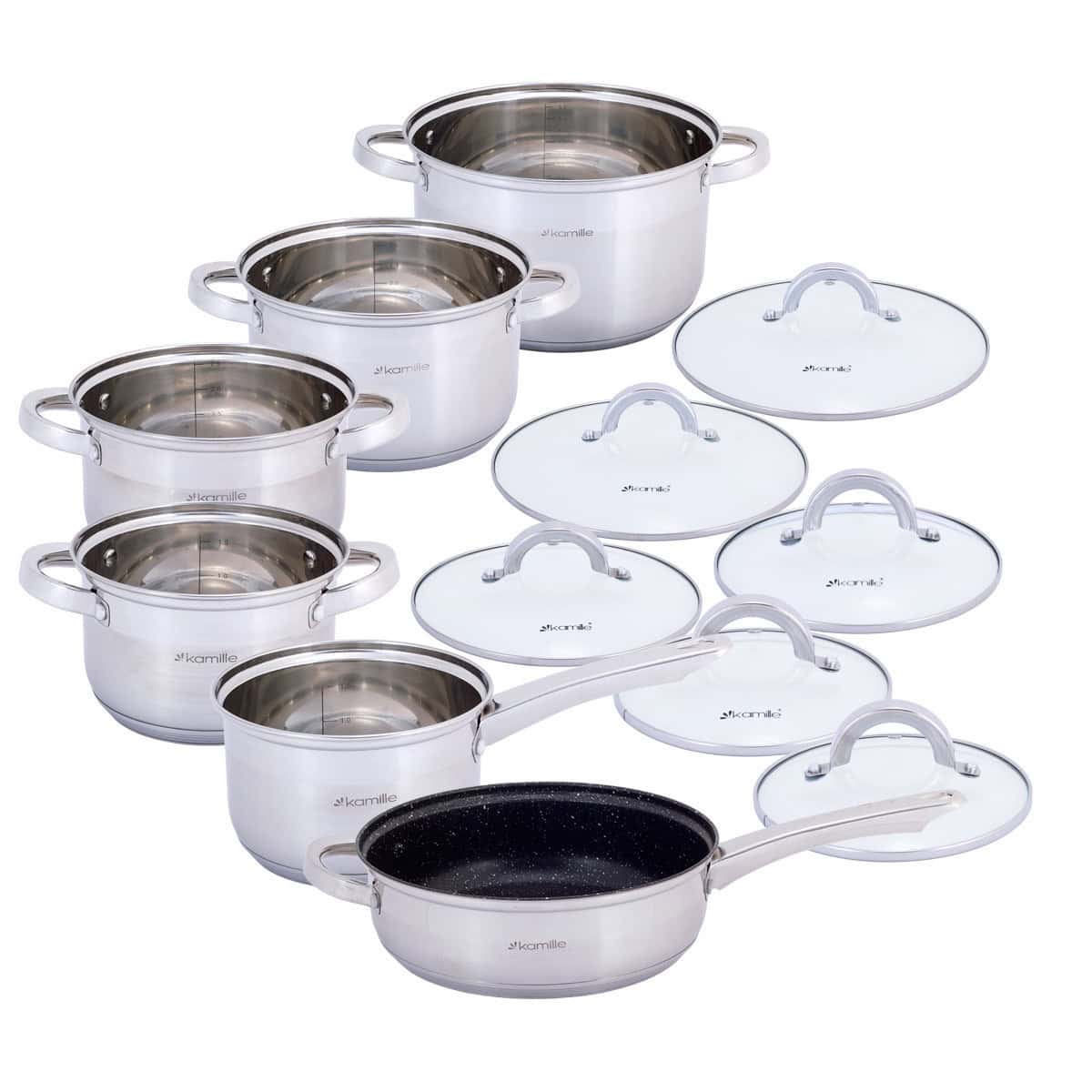 Set de vase 12 piese din otel inoxidabil – Kamille 5634S