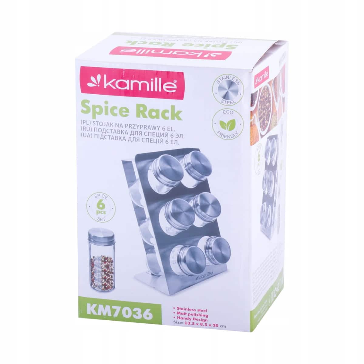 Stativul din inox ofera stabilitate si un aspect elegant. Borcanele sunt concepute pentru a fi reumplute si curatate usor. Structura compacta permite economie de spatiu.