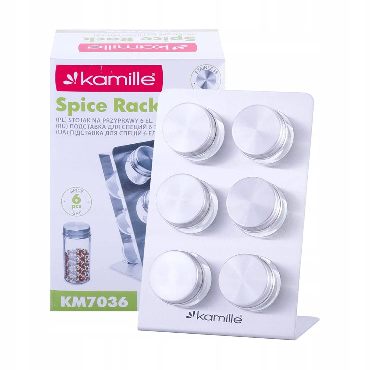 Acest set este util atat pentru sare/piper/paprika, cat si pentru alte condimente esentiale. Este un Set suport condimente 6 recipiente inox un element util pentru organizarea eficienta a bucatariei.