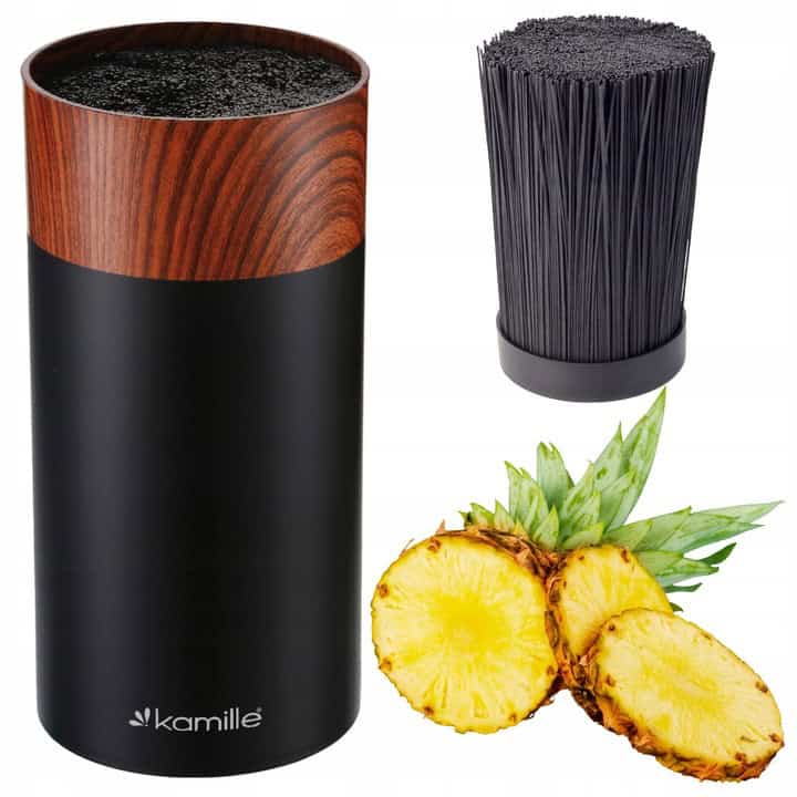 Organizarea cuțitelor în bucătărie este esențială nu doar pentru siguranță, ci și pentru eficiență în timpul gătitului. Cu suportul de cuțite Kamille, beneficiezi de un stativ robust și funcțional, dotat cu un recipient integrat care adaugă un plus de utilitate și ordine.