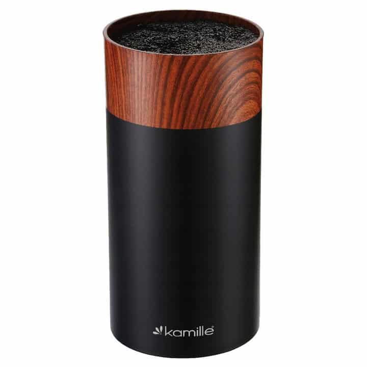 Acest suport cutite Kamille este fabricat din materiale durabile care îi oferă rezistență și stabilitate. Designul atent al stativului asigură că lamele cuțitelor nu vin în contact între ele, prevenind deteriorarea muchiilor și menținând cuțitele ascuțite mai mult timp. Recipientul integrat este ideal pentru depozitarea accesoriilor mici de bucătărie (precum șervețele, rigle de lemn, tocătoare subțiri) sau chiar pentru resturi temporare – ajutând astfel la menținerea unui spațiu de lucru curat și organizat.