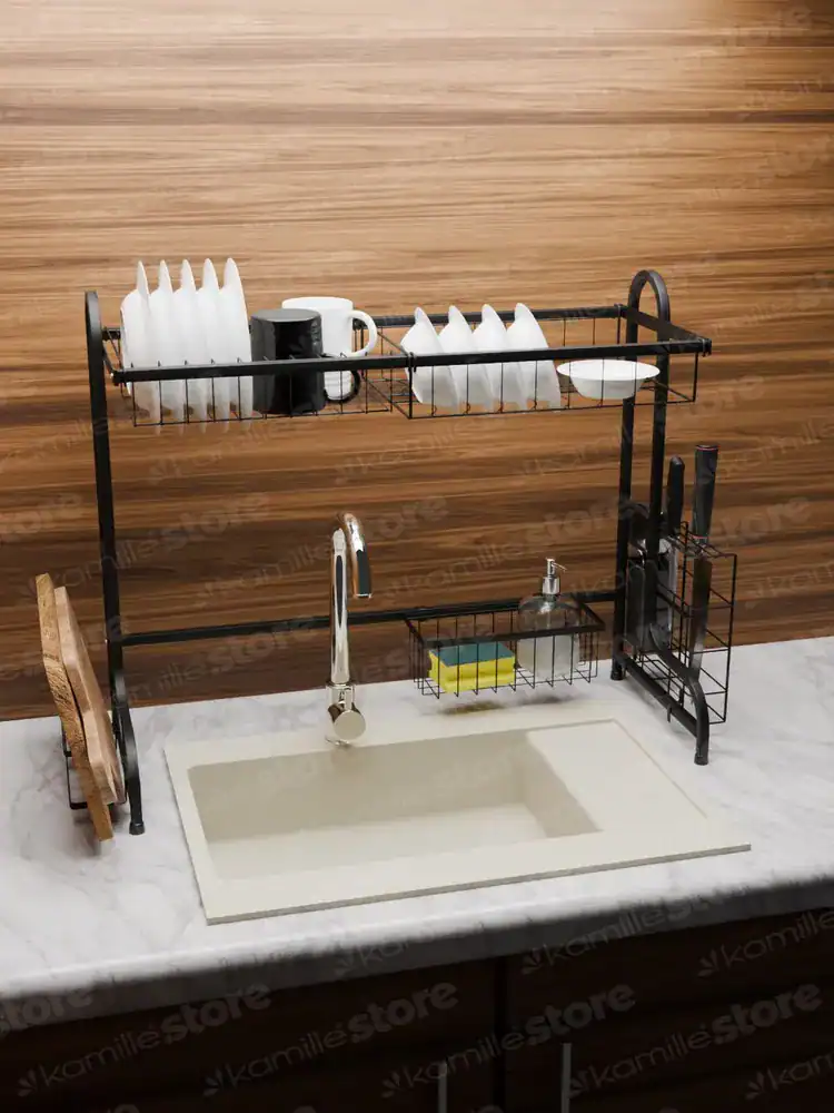 Este stabil si rezistent la greutate si umezeala. Acest Suport vase chiuveta negru transforma zona de spalare intr-un spatiu ordonat si eficient.