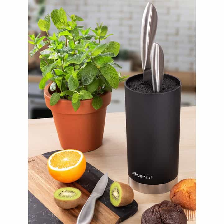 Prin combinația de funcționalitate, design modern și materiale de calitate, suportul rotund Kamille pentru cuțite și ustensile devine un element indispensabil în orice bucătărie. Oferă-ți confortul unei organizări eficiente și transformă fiecare sesiune de gătit într-un proces mai simplu și mai plăcut.