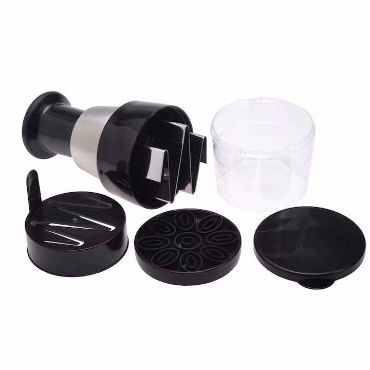 Lama din inox oferă o tăiere clară și precisă; legumele nu se zdrobesc, ci păstrează forma și textura. Dispozitivul permite un tăiat rapid și constant, ideal pentru pregătirea salatelor și a garniturilor.