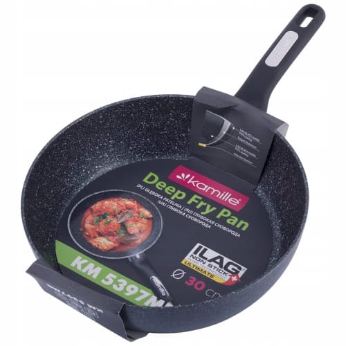 Tigaie adanca de 30 cm din aluminiu turnat. Invelisul de marmura neagra asigura o rezistenta sporita si proprietati antiaderente excelente.