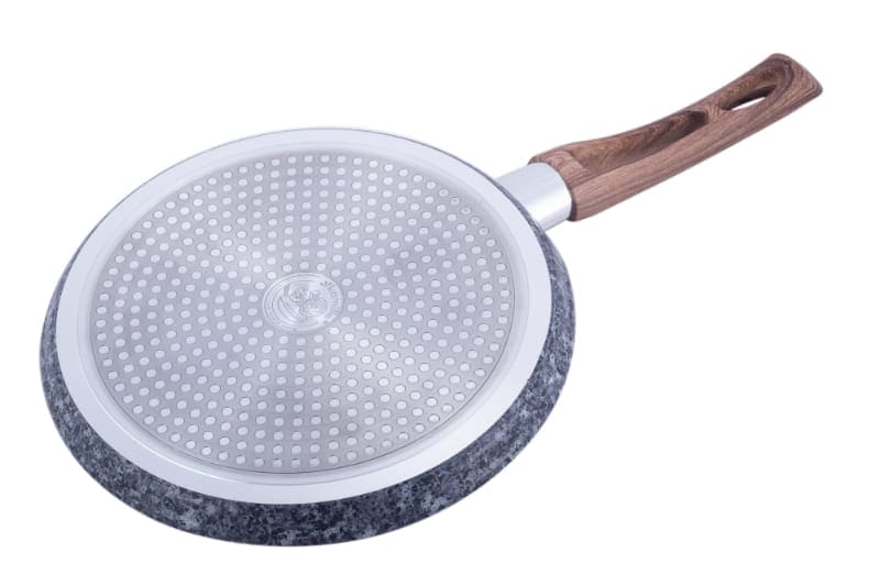 Fundul este special optimizat pentru o distributie rapida a caldurii si este compatibil cu toate sursele de caldura, inclusiv inductia. invelisul din granit (marmura) este durabil si rezistent la abraziune. Manerul (soft-touch, presupus) ofera confort.