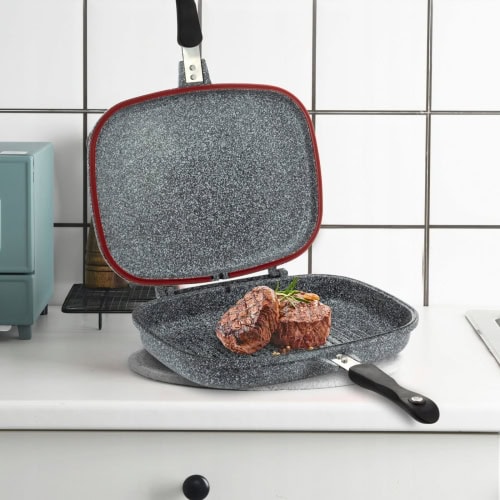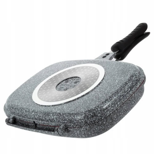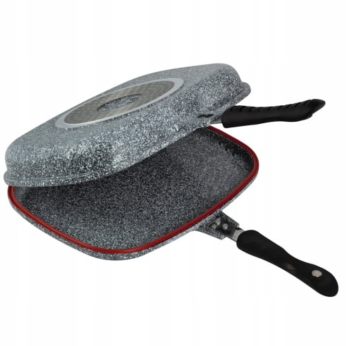 Fabricata din aluminiu turnat cu strat antiaderent de marmura, aceasta tigaie grill dubla este perfecta pentru fripturi, peste sau legume. Suprafata striata ofera aspectul autentic de gratar, fara a fi nevoie de mult ulei. Este ideala pentru un gatit curat, fara stropi de grasime in bucatarie. Aceasta Tigaie grill dubla 32cm este solutia perfecta pentru amatorii de preparate sanatoase si gustoase.