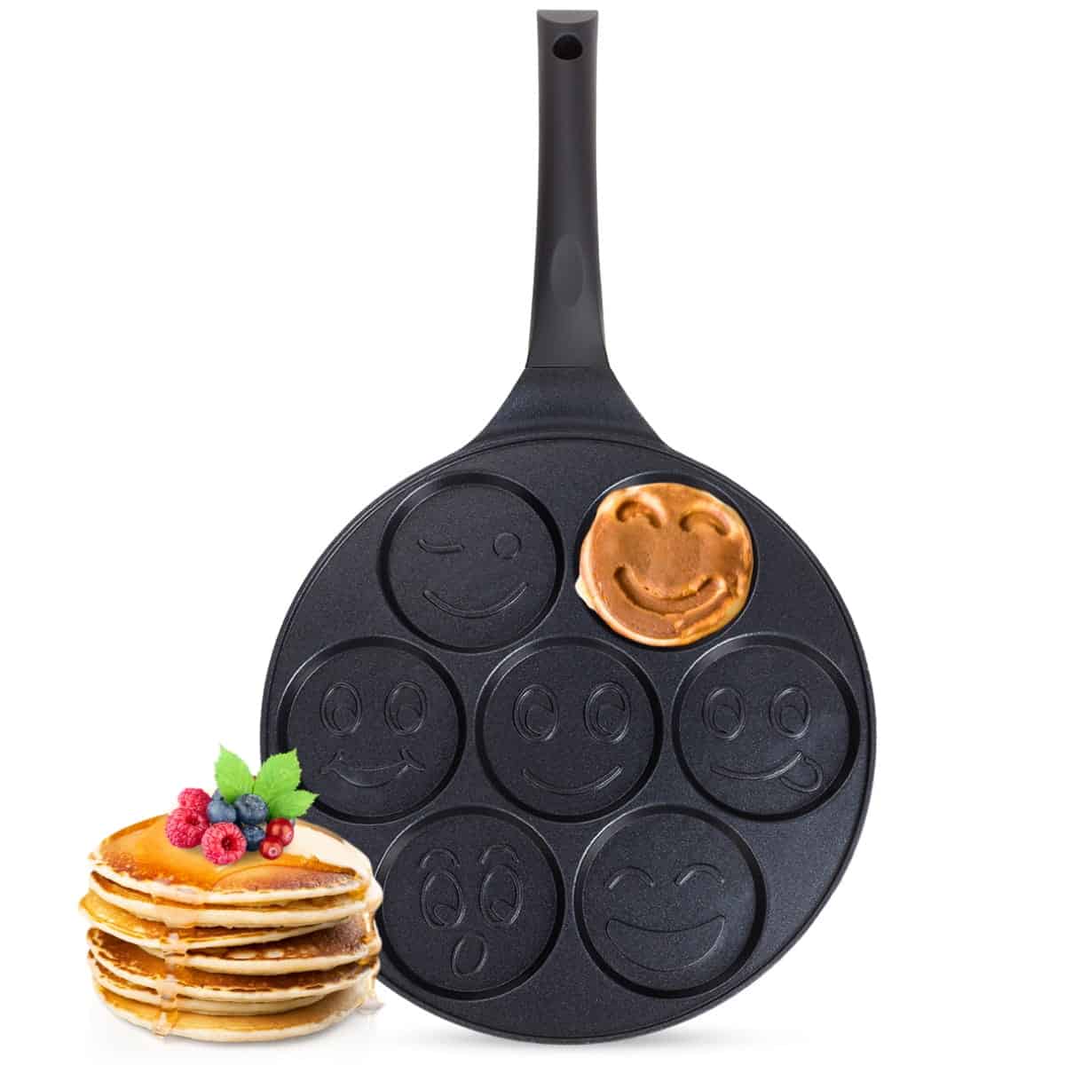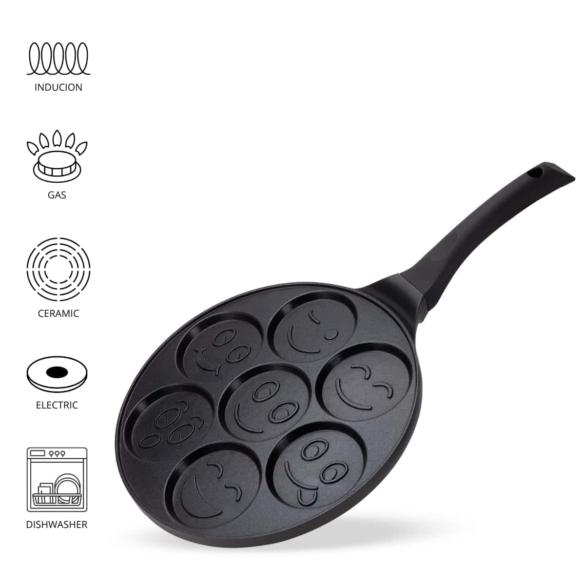 Dispune de un invelis de marmura (granit) antiaderent de inalta calitate, care previne lipirea aluatului si permite gatitul cu putina grasime. Corpul din aluminiu (presupus) asigura incalzirea rapida si uniforma. Este compatibila cu majoritatea surselor de caldura, inclusiv plitele cu inductie (fund inductiv – presupus din designul modern).